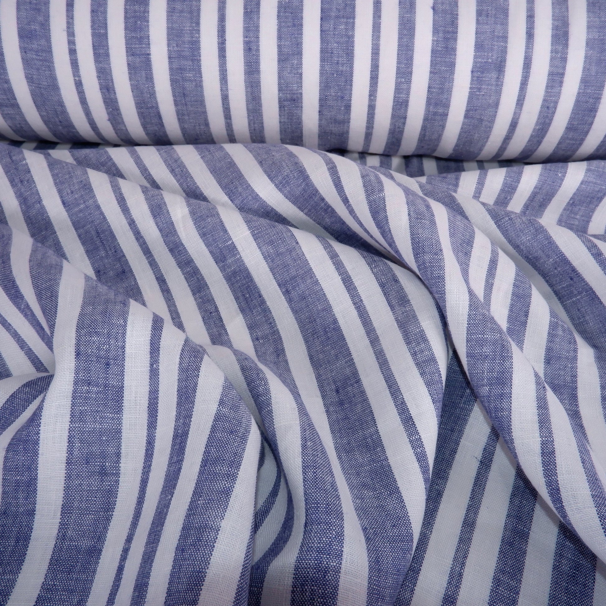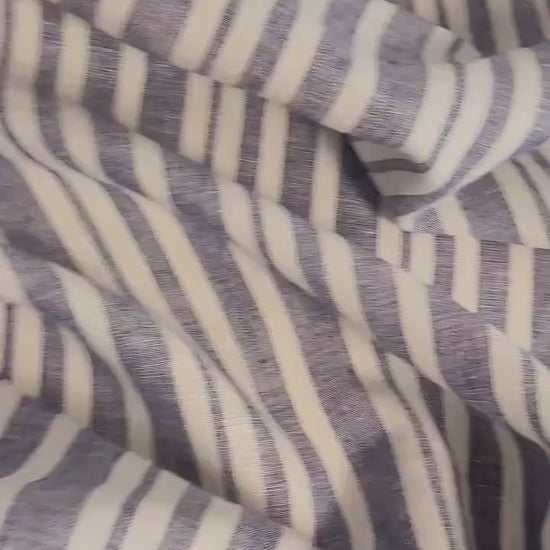 100% blue and white stripes in linen fabric - Medium weight - nautical fabric for clothing, curtains, home textile, home decor craft project