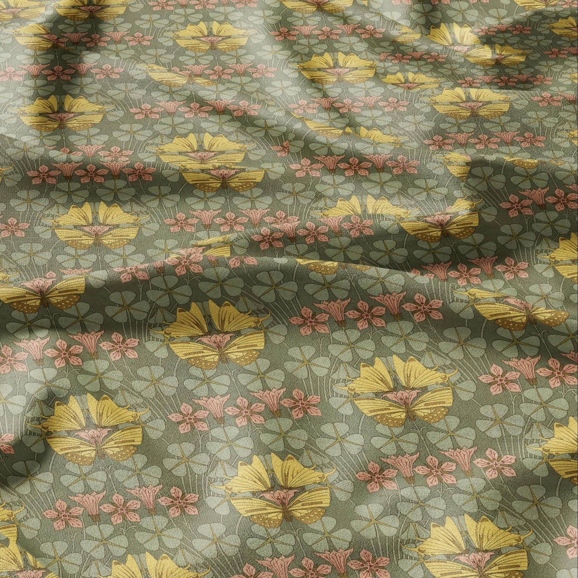 100% linen Art Nouveau Print fabric for Curtain Upholstery Cushion - Floral fabric with butterflies