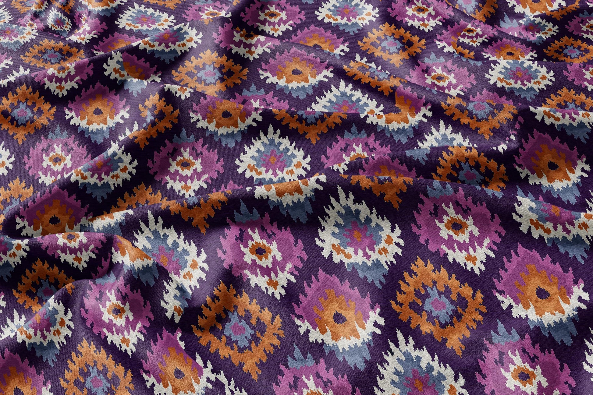 linen fabric with ikat print pattern