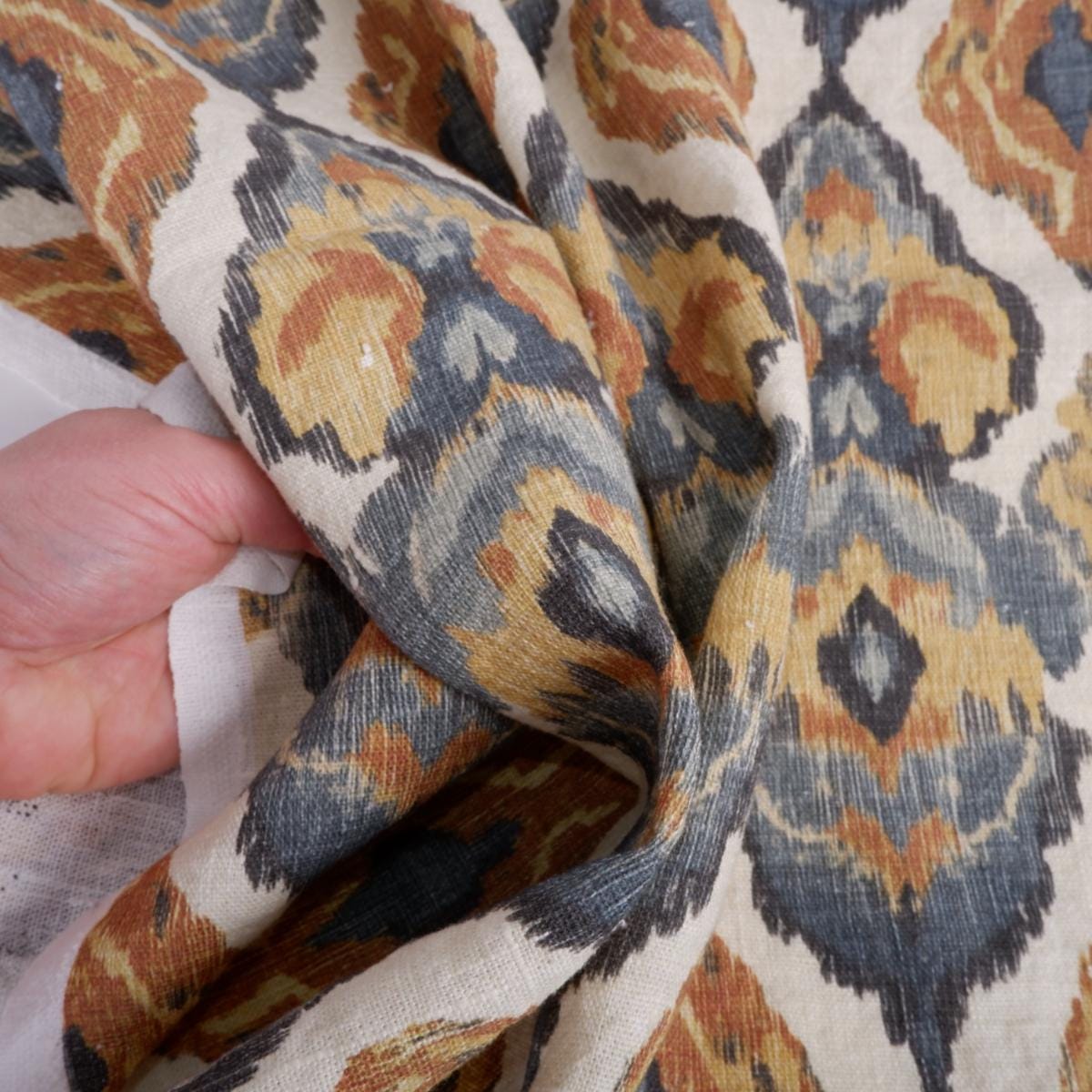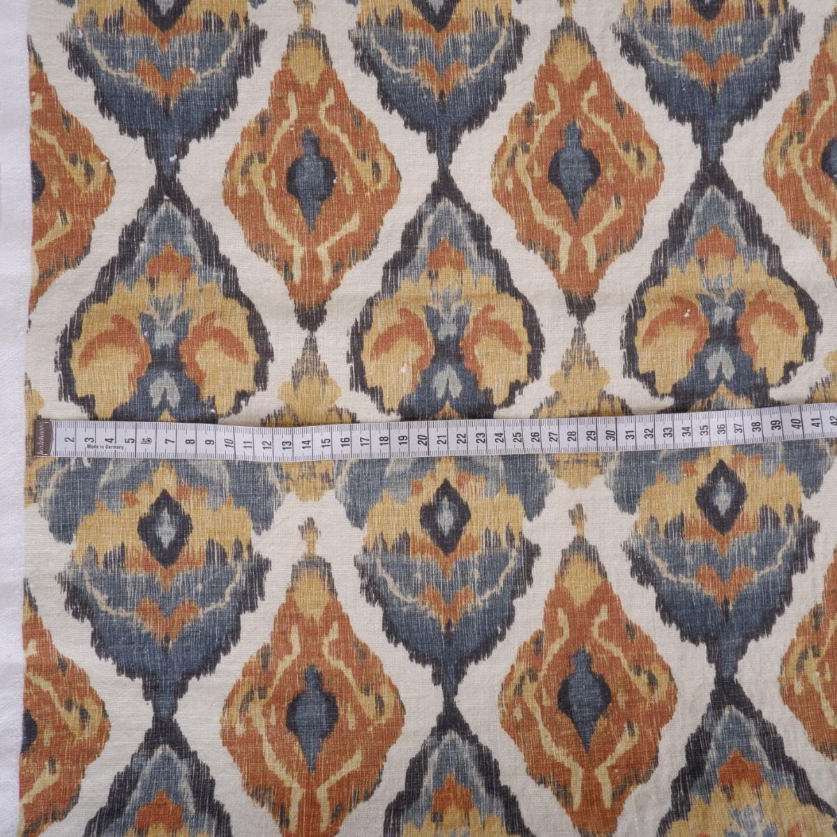 Introducing our exquisite 100% Linen Fabric, masterfully crafted in an abstract Ikat design that elegantly marries tradition with contemporary aesthetics. This heavy linen material boasts a rich texture and a remarkable durability, making it ideal for both upholstery and drapery.