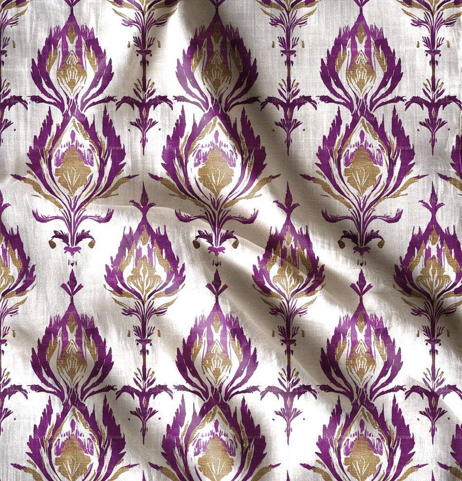 100% LINEN Fabric Abstract Wabi Sabi , purple ikat print on linen japandi wabisabi linen print