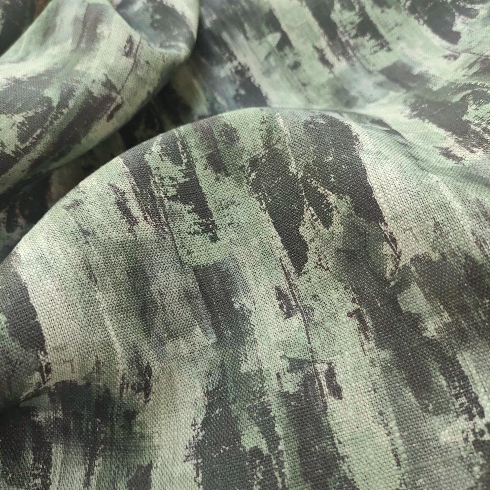 100% LINEN Fabric Abstract Wasi Sabi , green print