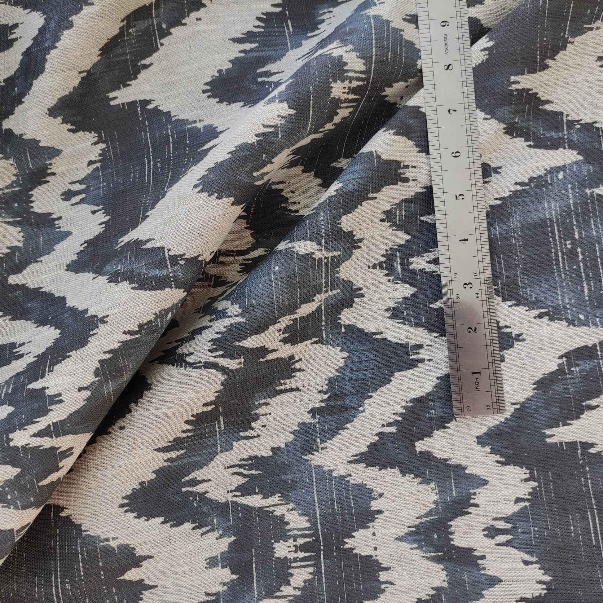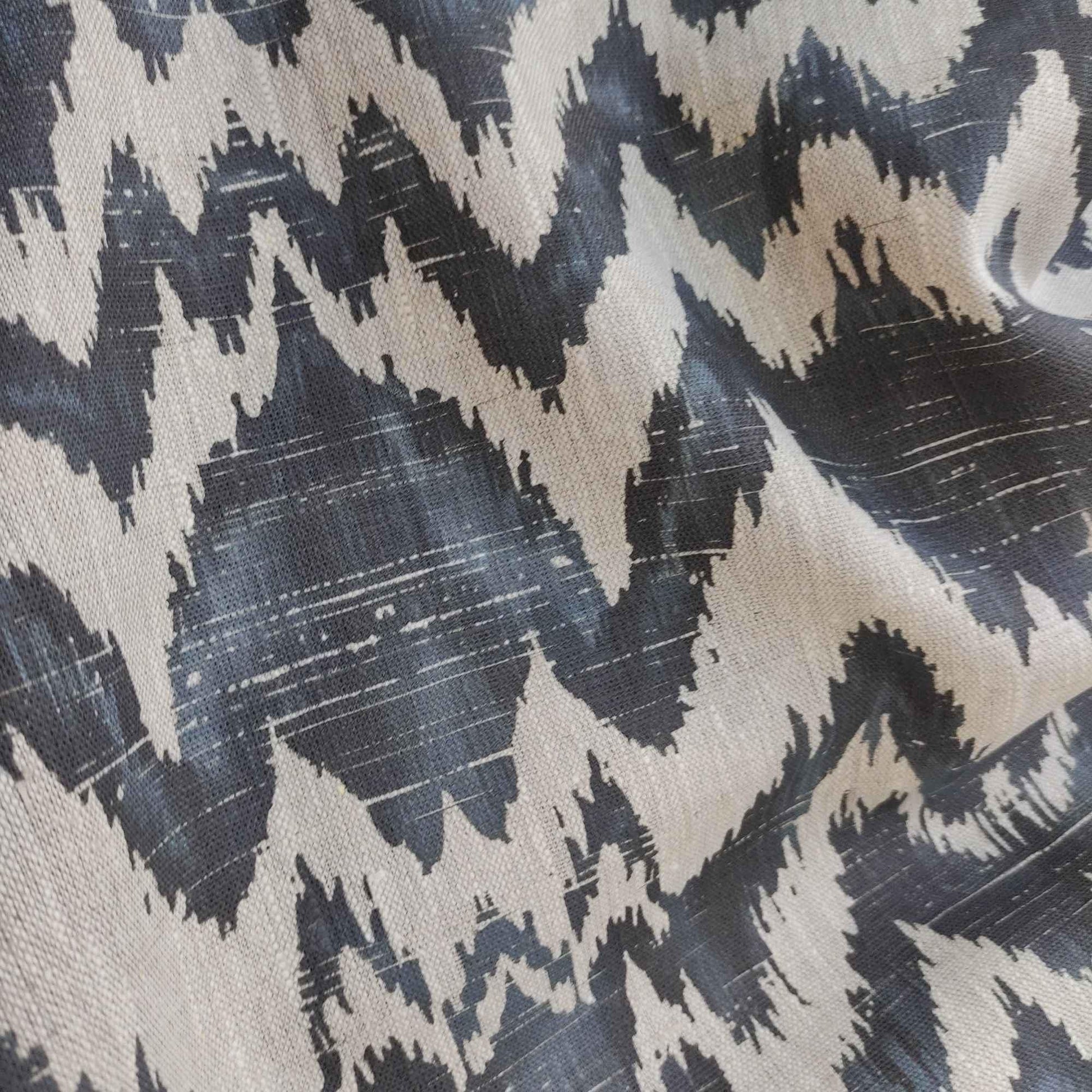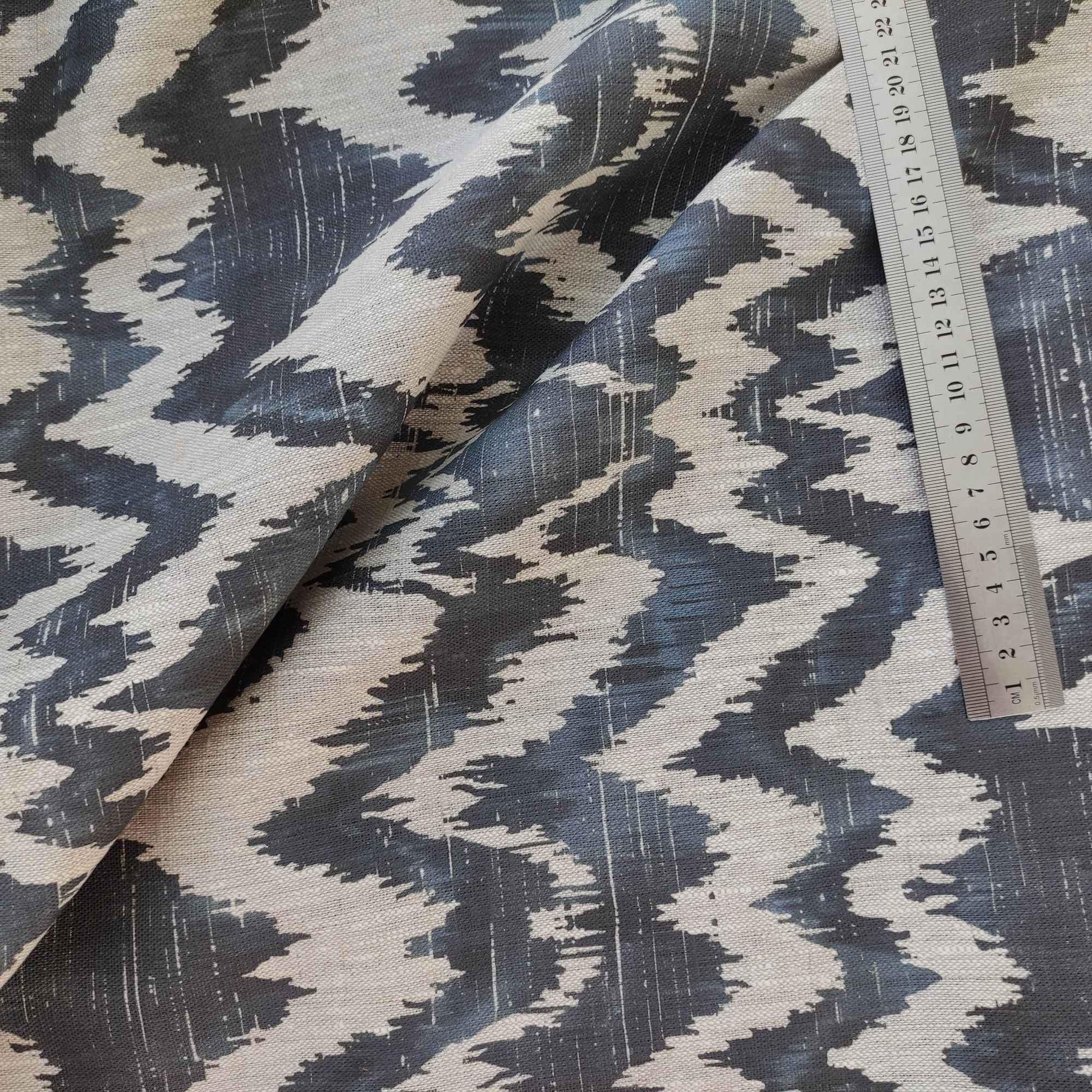 100% LINEN Fabric Abstract zigag WabiSabi , dark blue print on natural linen japandi wabi sabi linen print