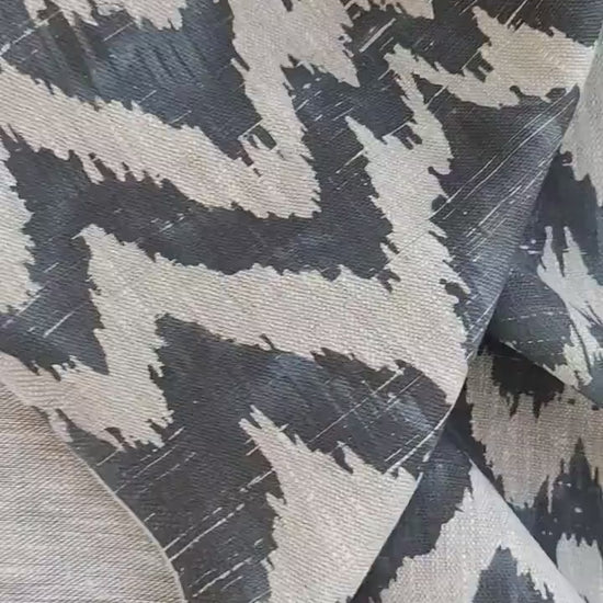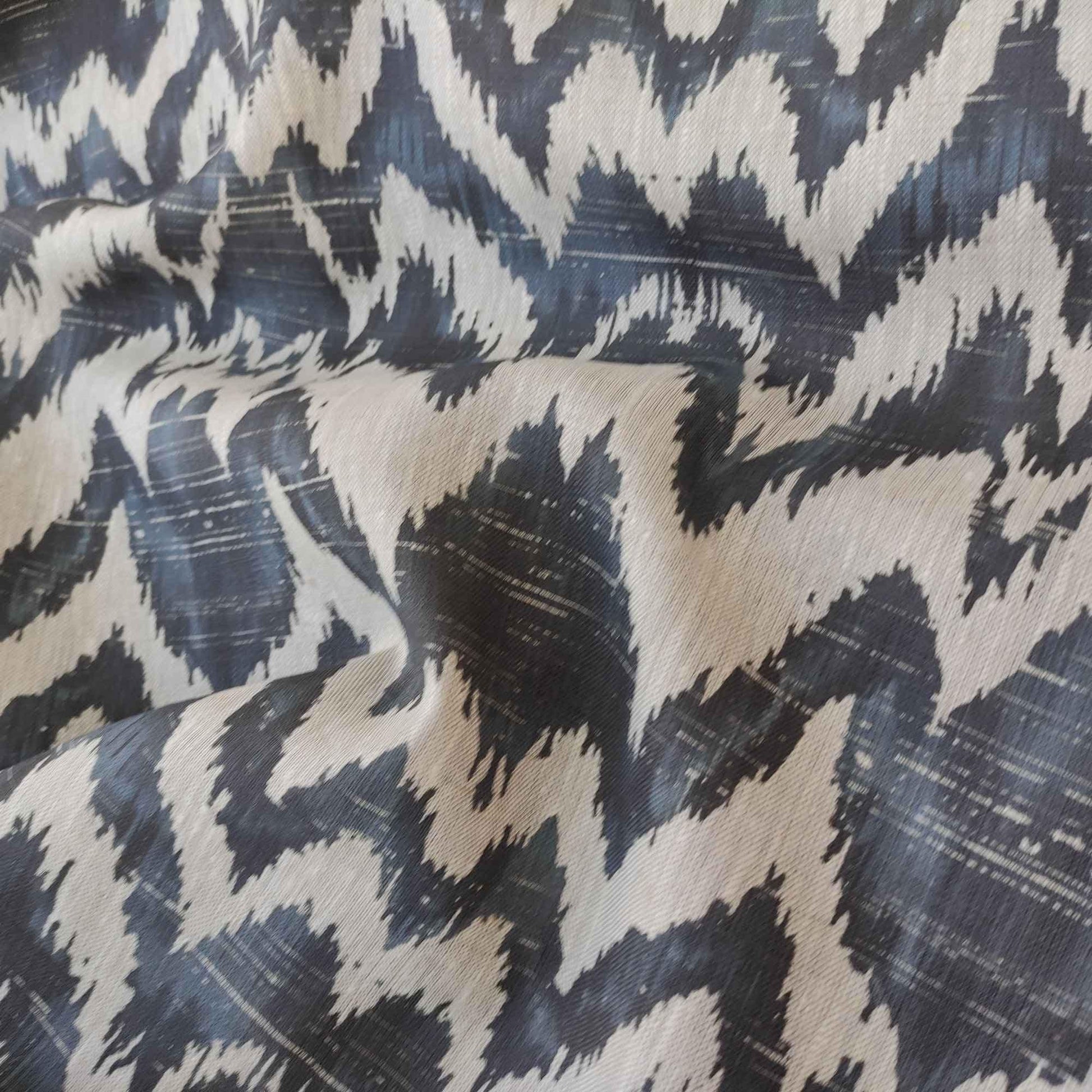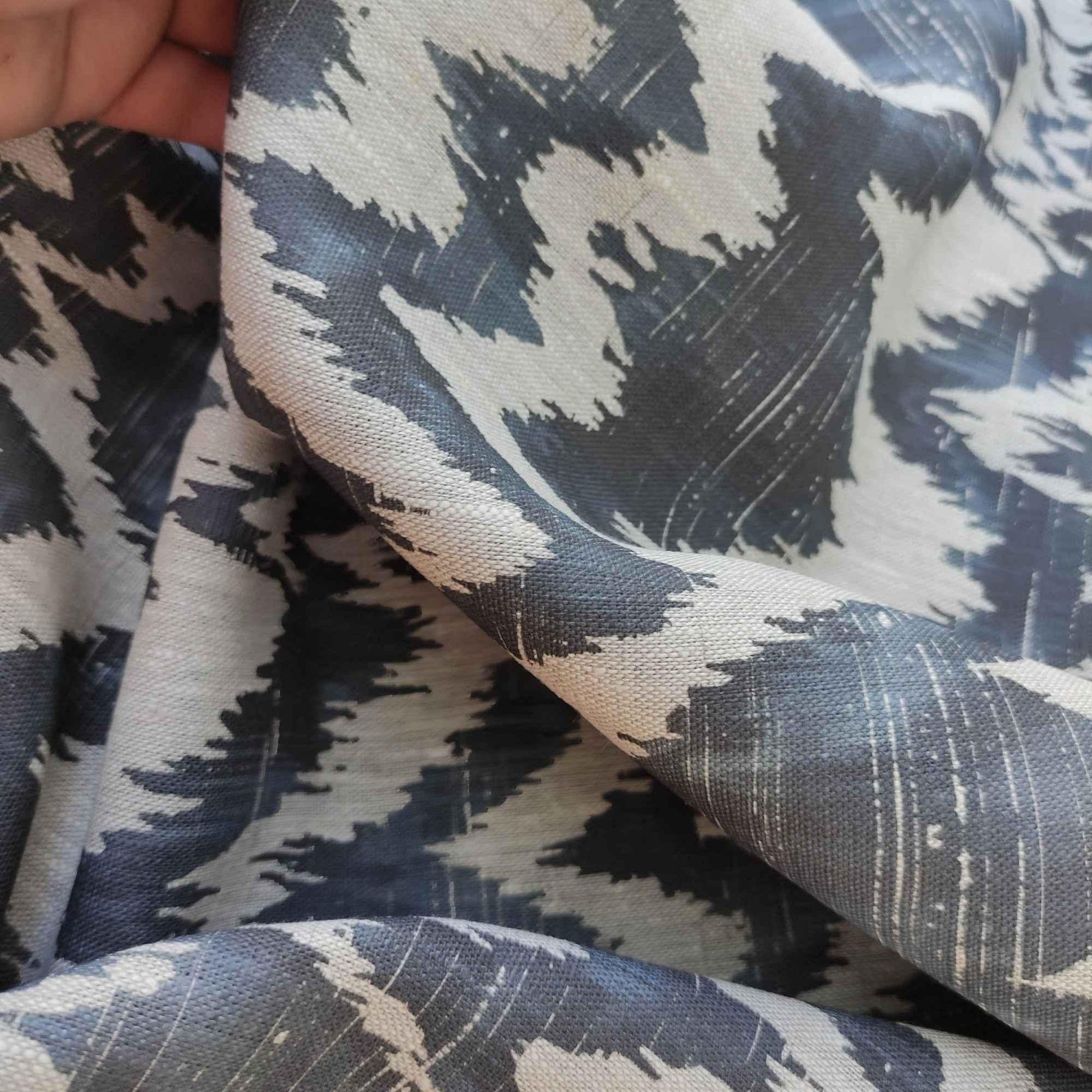 100% LINEN Fabric Abstract zigag WabiSabi , dark blue print on natural linen japandi wabi sabi linen print