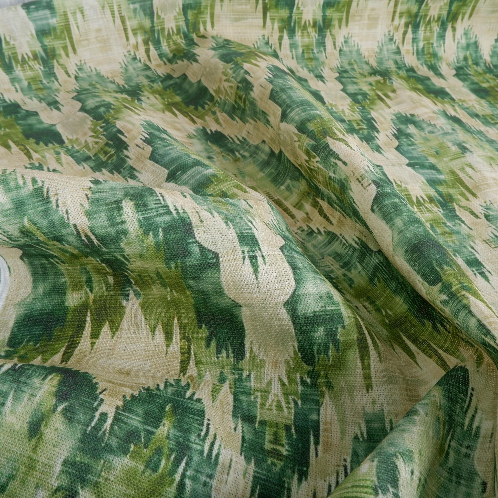 100% LINEN Fabric Abstract zigag WabiSabi - green print on linen japandi wabi sabi linen print 2087