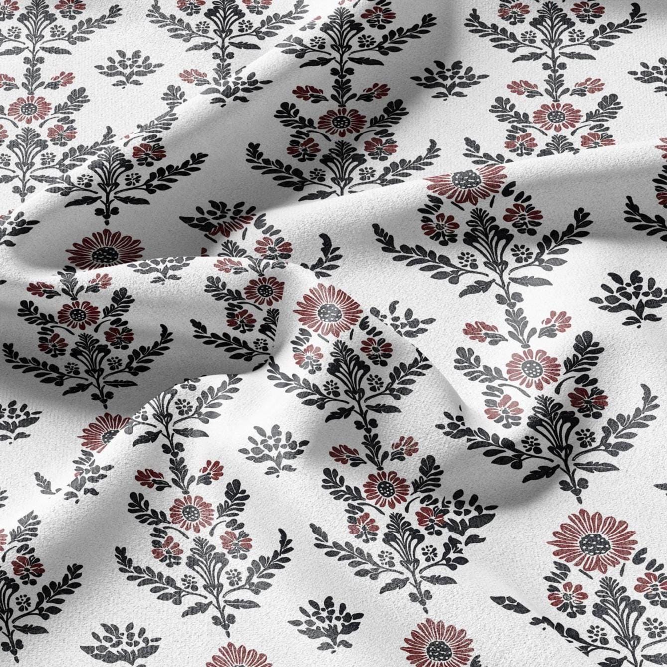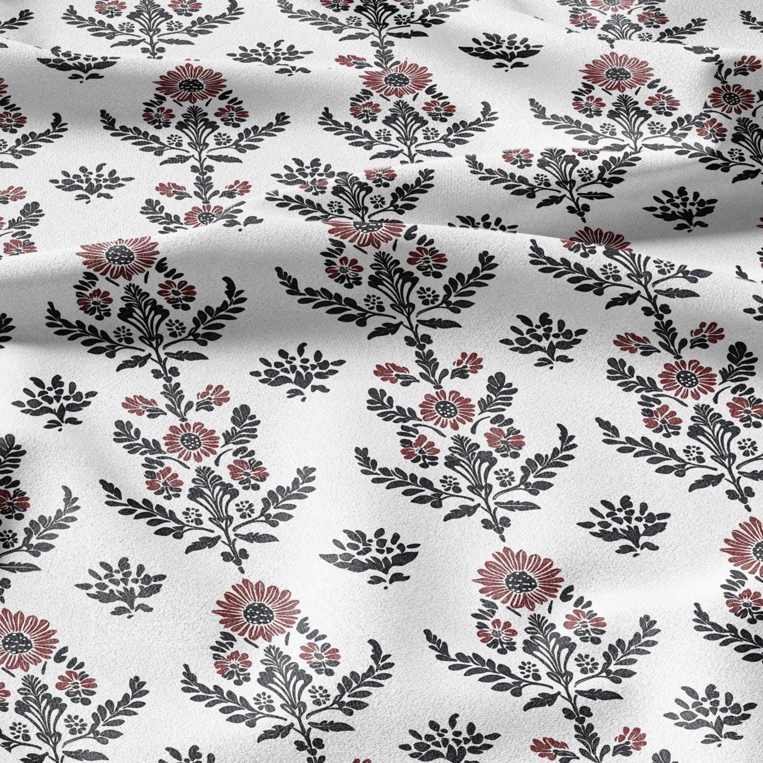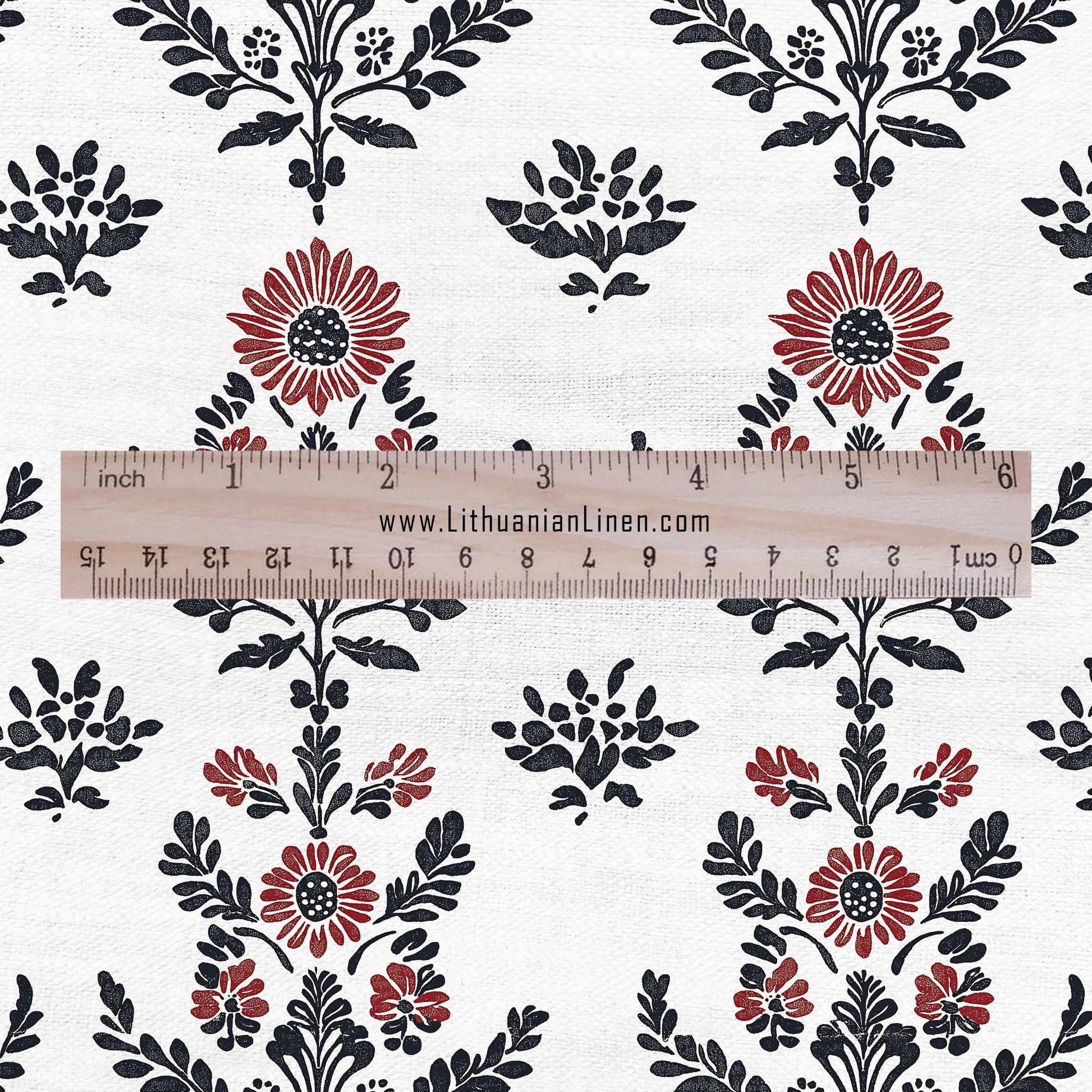 100% LINEN Fabric black red block print - floral fabric for upholstery home decor dress making 2138