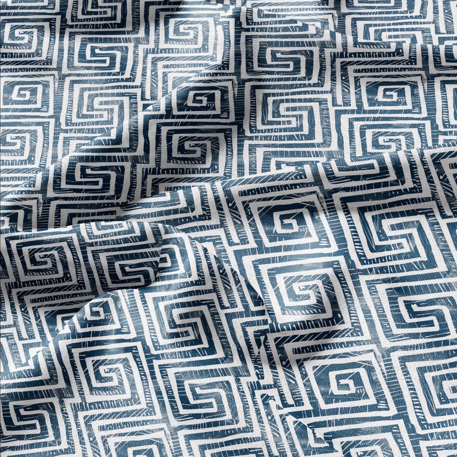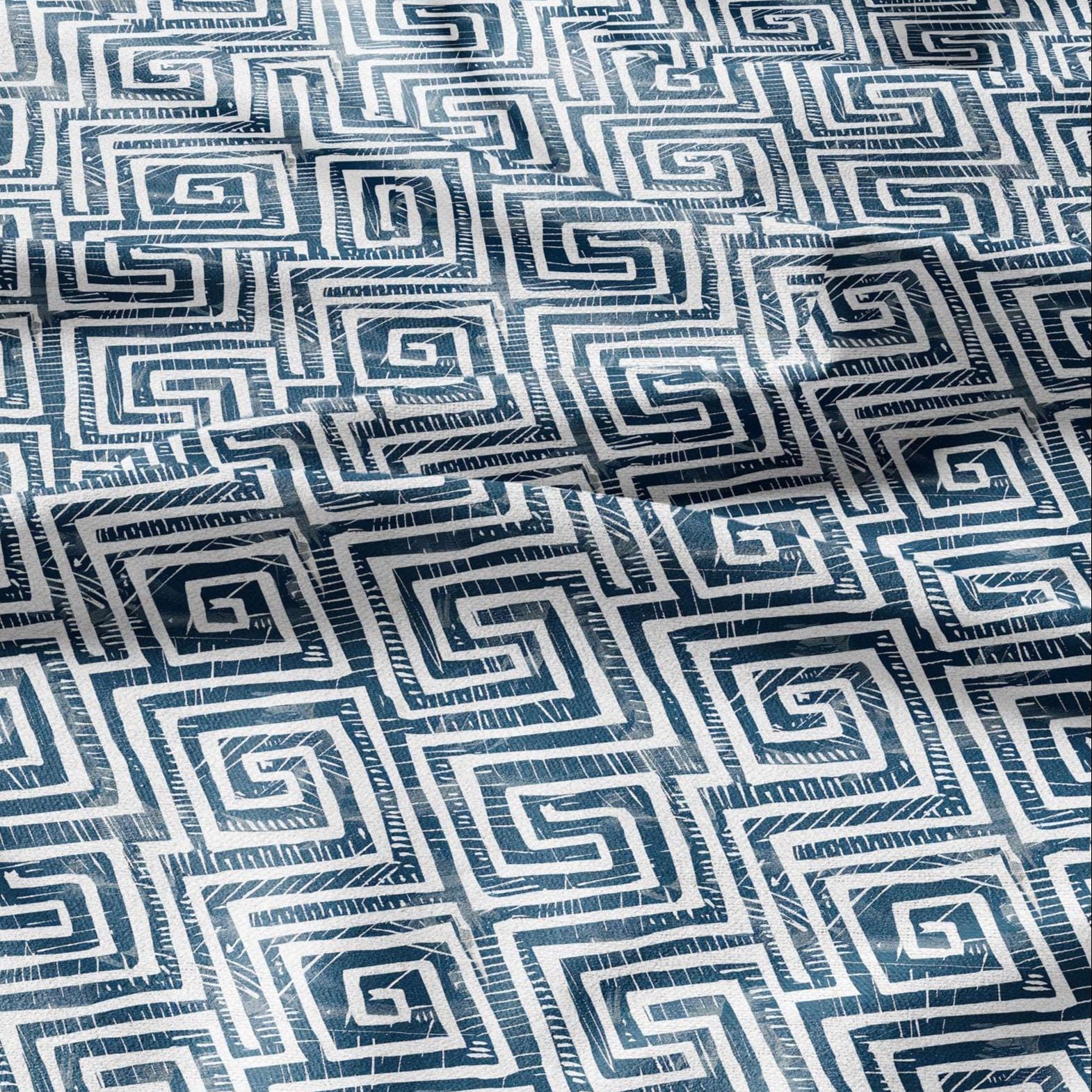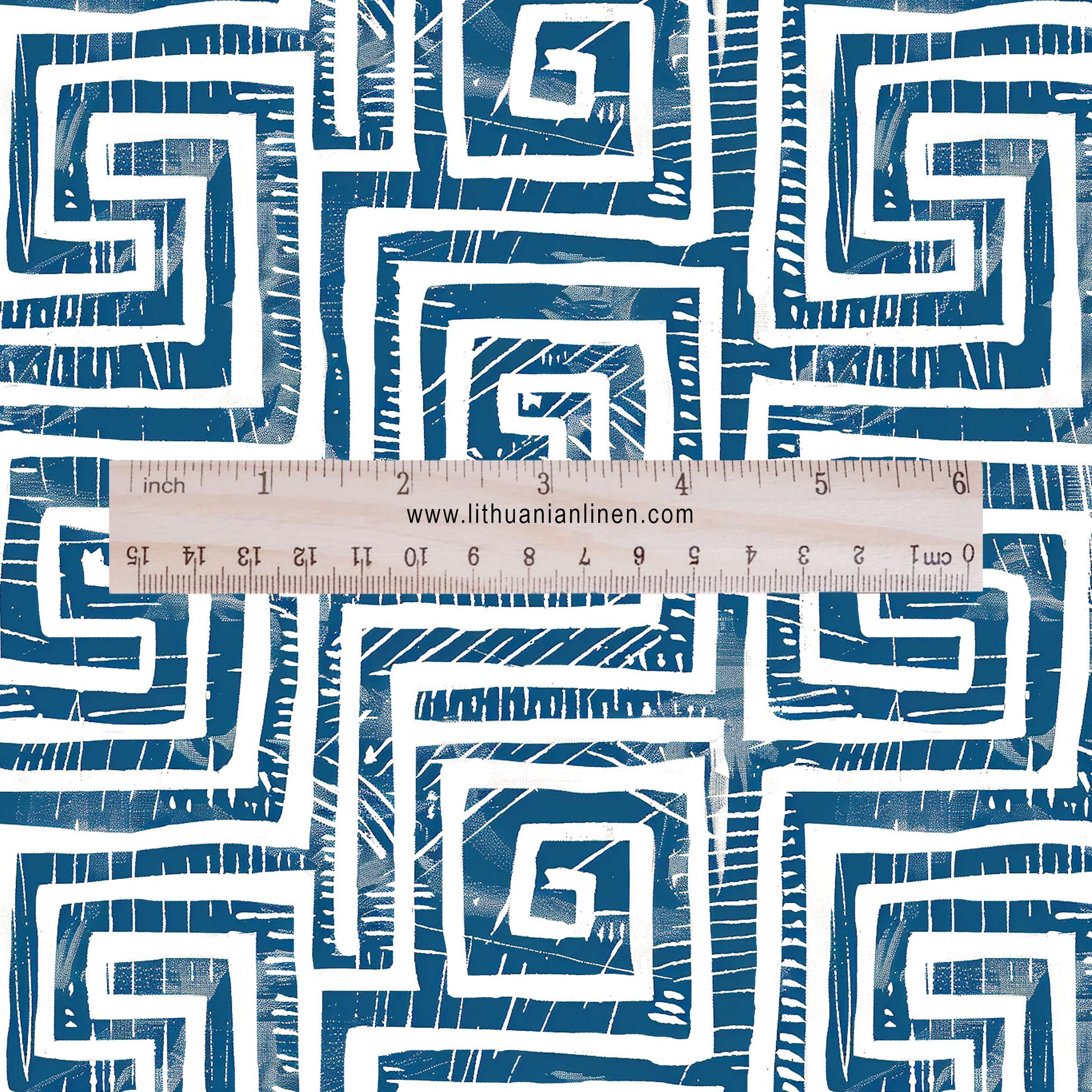 100% LINEN Fabric block Greek key Infinity print indigo blue on white - heavy linen fabric for upholstery home decor 2590