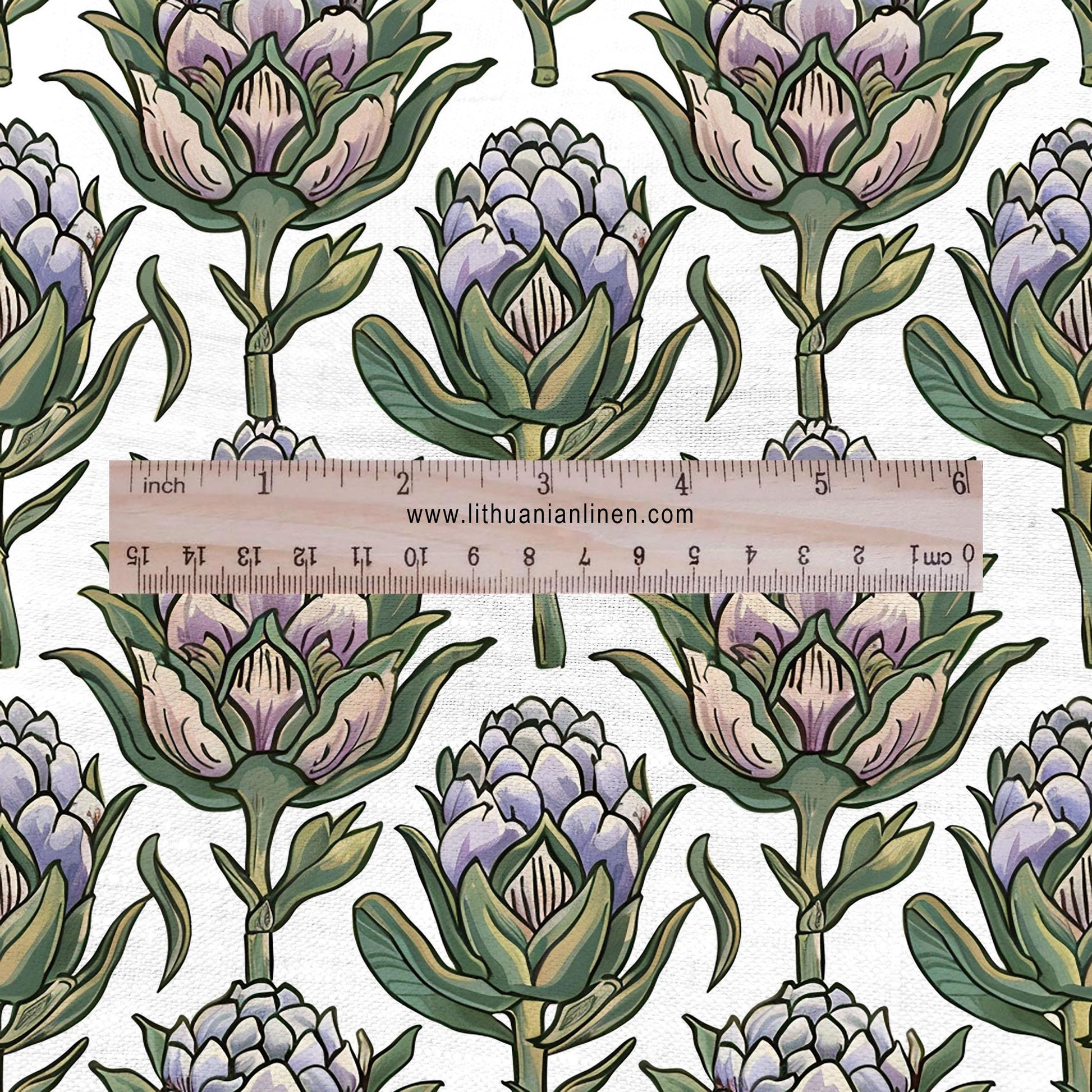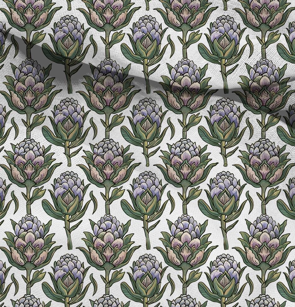 linen fabric with block print pattern Artichoke