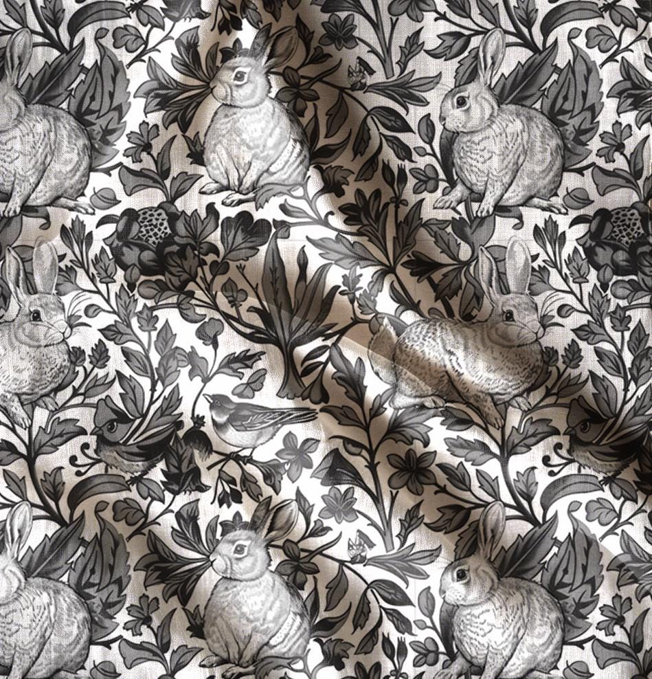 Discover the elegance of our 100% Linen Fabric featuring an aRabbit print on white linen. This contemporary print harmoniously blends artistry and sophistication, making it a perfect choice for a range of applications, from upholstery to drapery.
