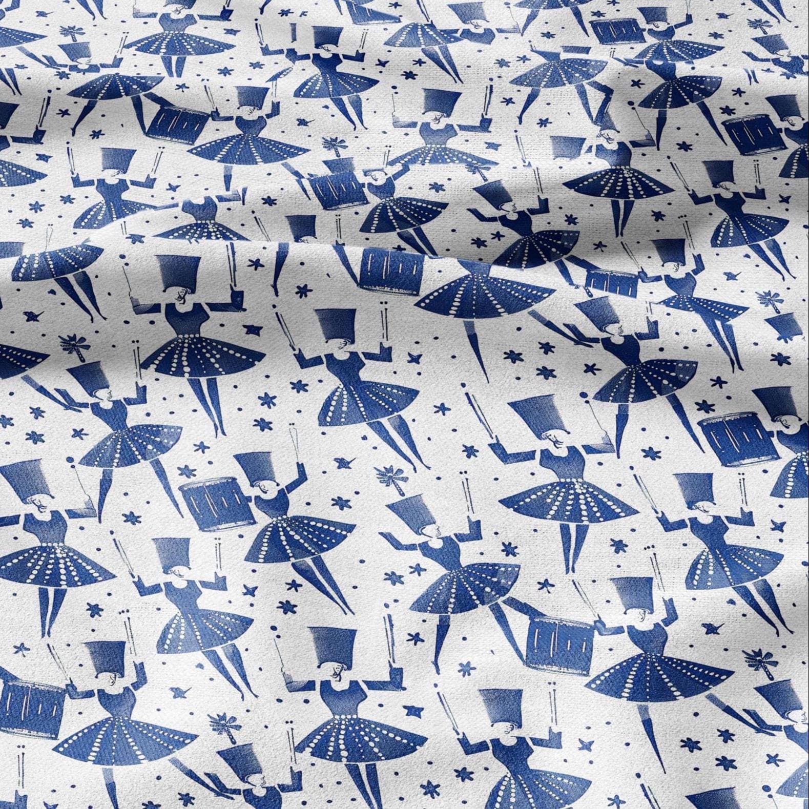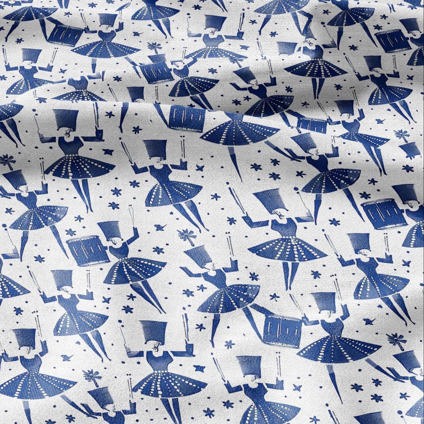100% LINEN Fabric block print Drummers - blue white print - heavy linen fabric for upholstery home decor 2592