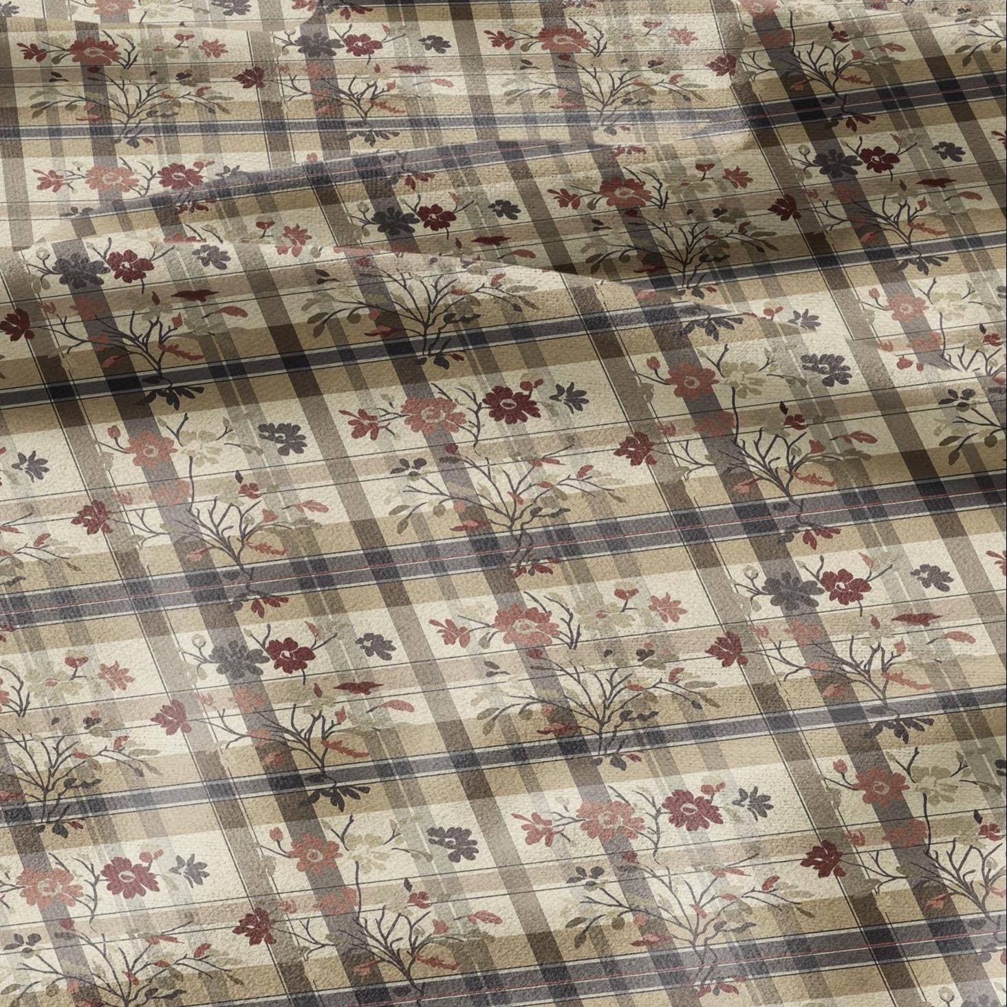 100% LINEN Fabric block print Gingham floral - brown floral linen heavy for upholstery home decor - medium for dress making 2911