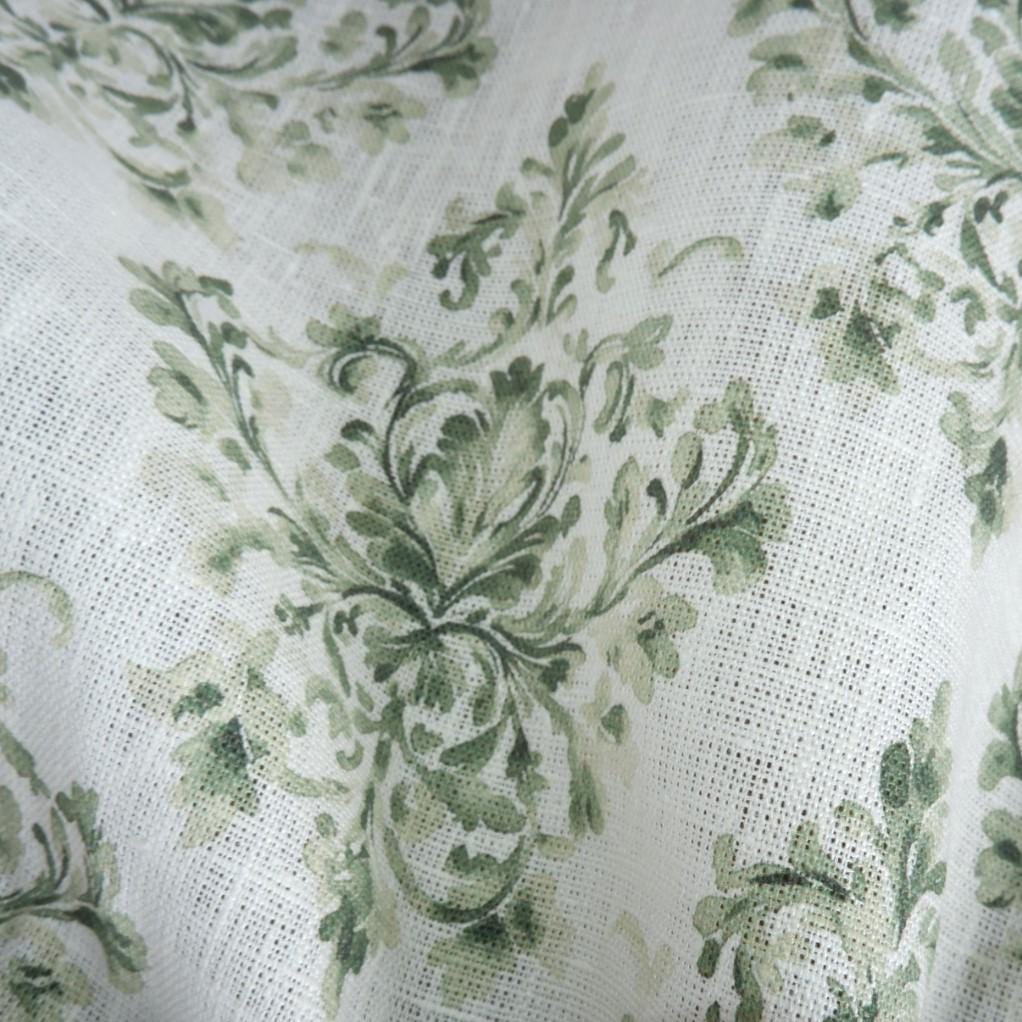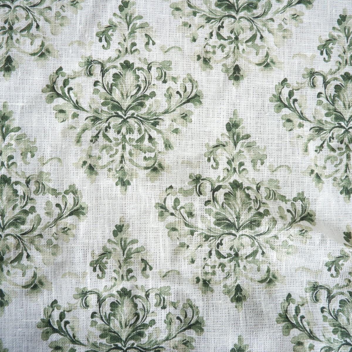 100% LINEN Fabric block print green on white, linen fabric with floral greenery print, heavy linen fabric for upholstery home decor