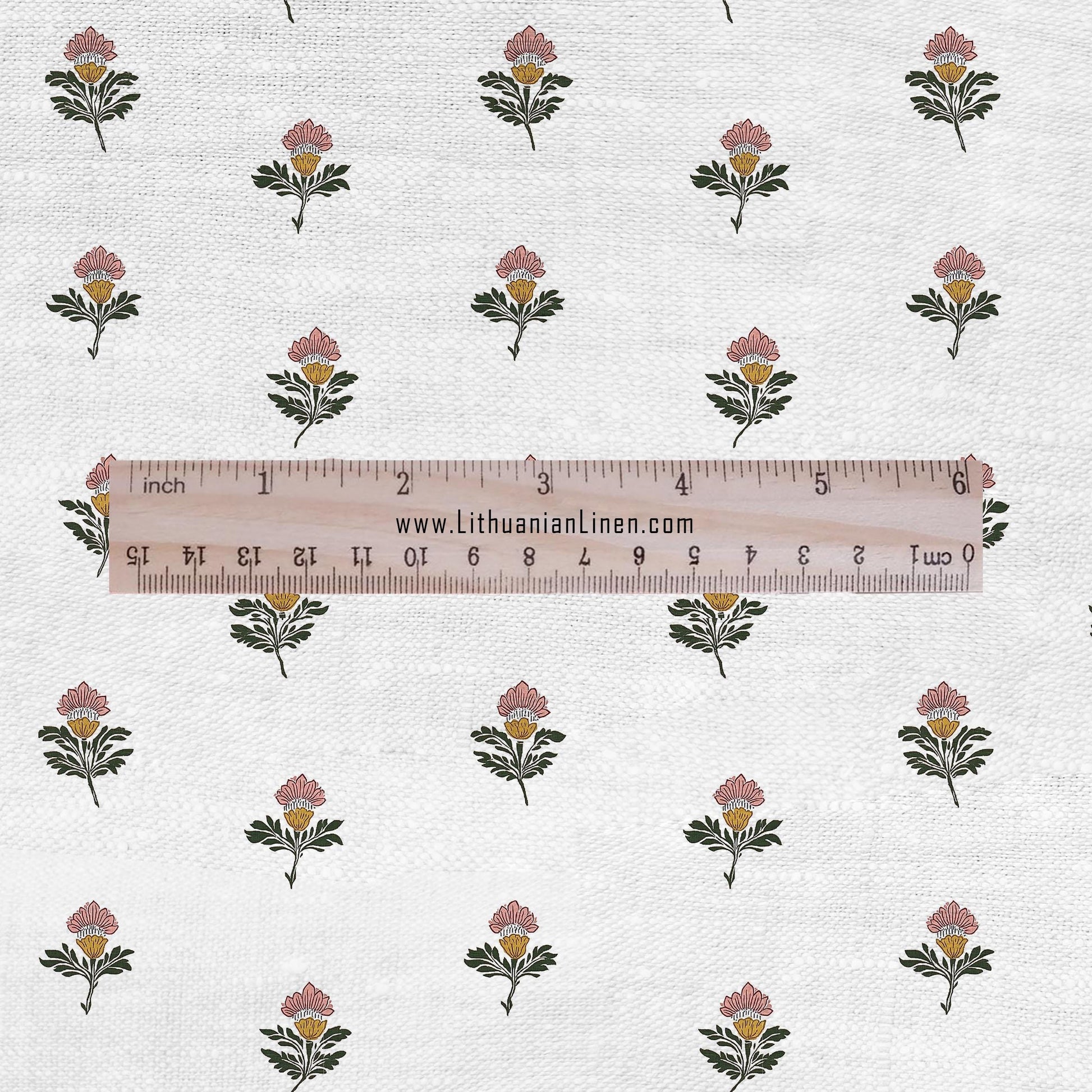 With a floral handprinted design , this 100% linen fabric is wonderfully minimalist but makes a chic statement. One of a kind material with those perfect imperfections that add to the beauty and character.