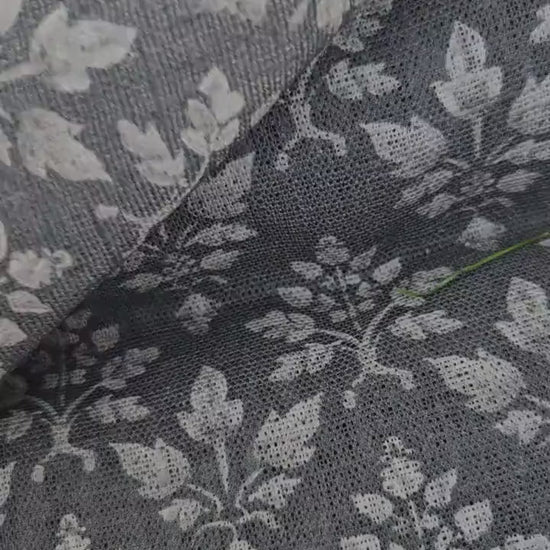 linen fabric with block print pattern floral stamp