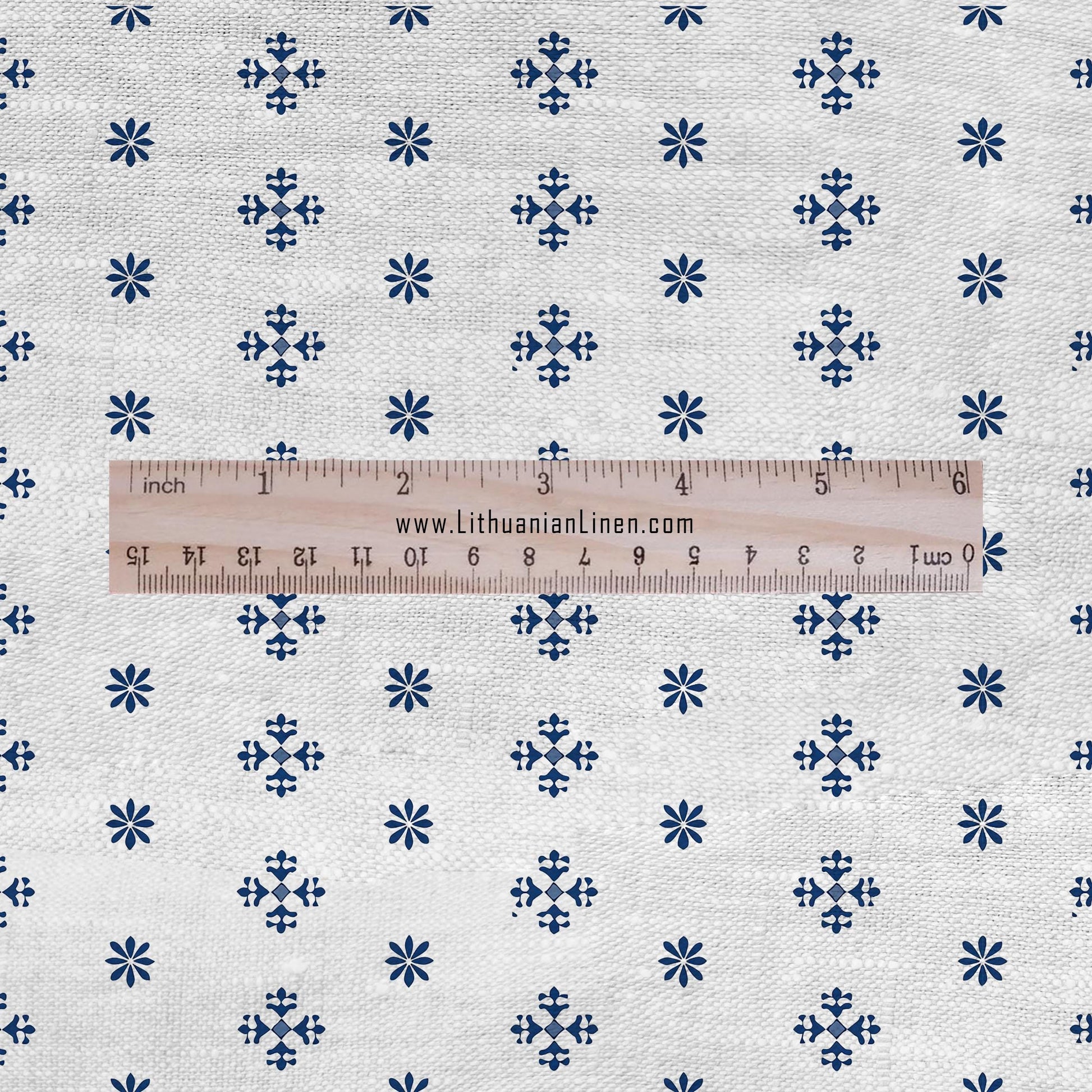 100% LINEN Fabric block print indigo blue white Swedish stars - scandinavian fabric with floral print - block print on linen 2670
