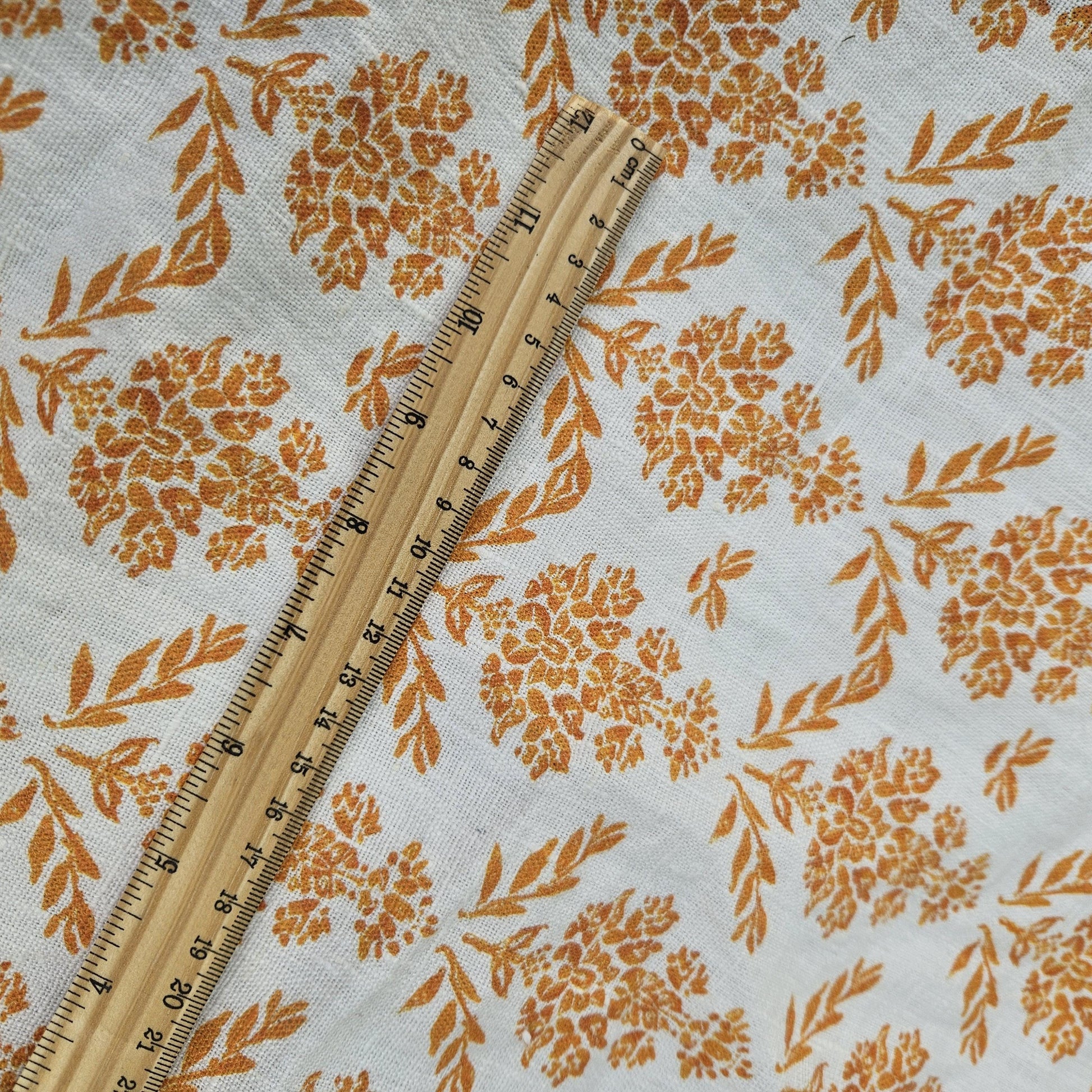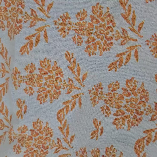 linen fabric with block print pattern floral stamp