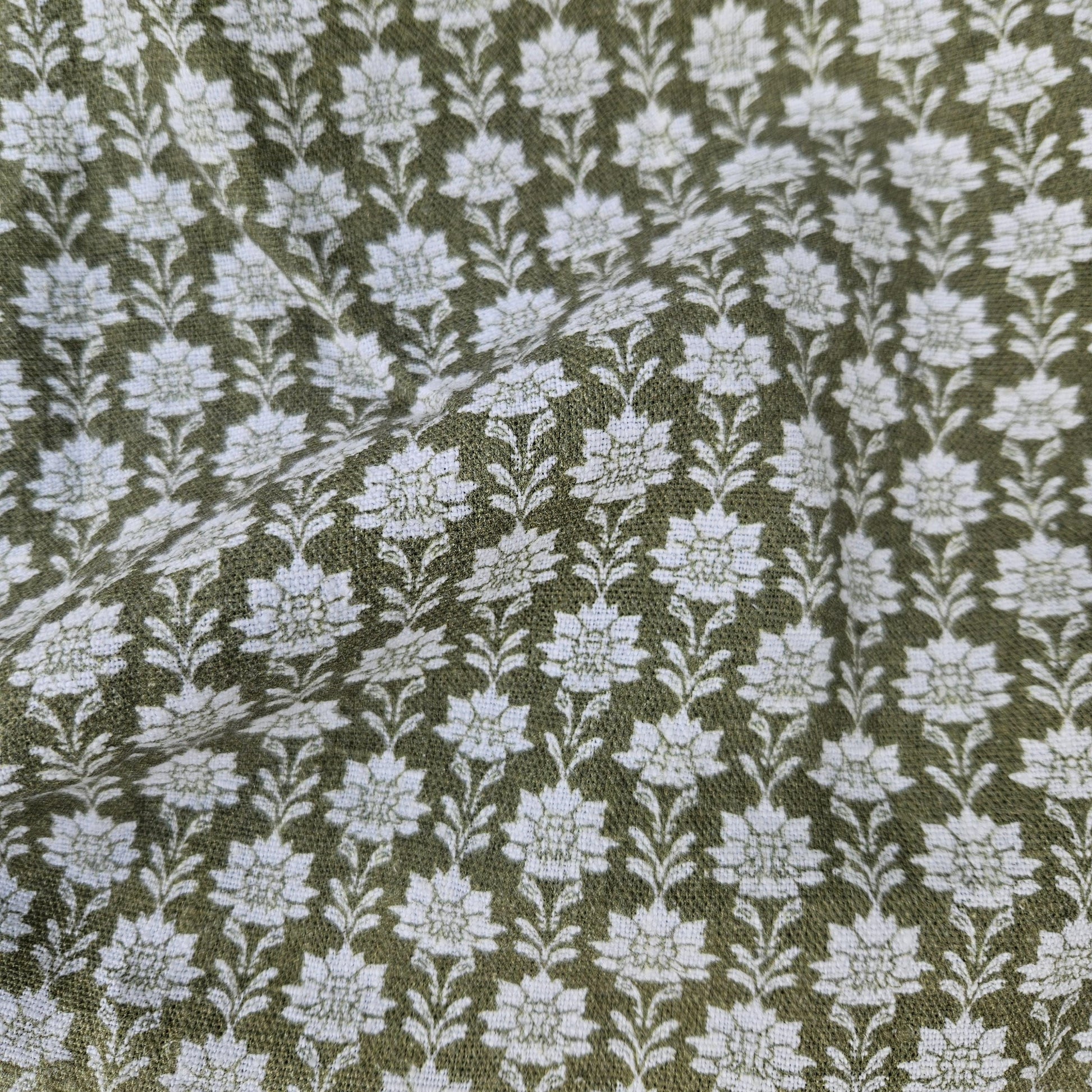 100% LINEN Fabric block print olive green on white - heavy linen fabric for upholstery home decor or medium for clothing 2512