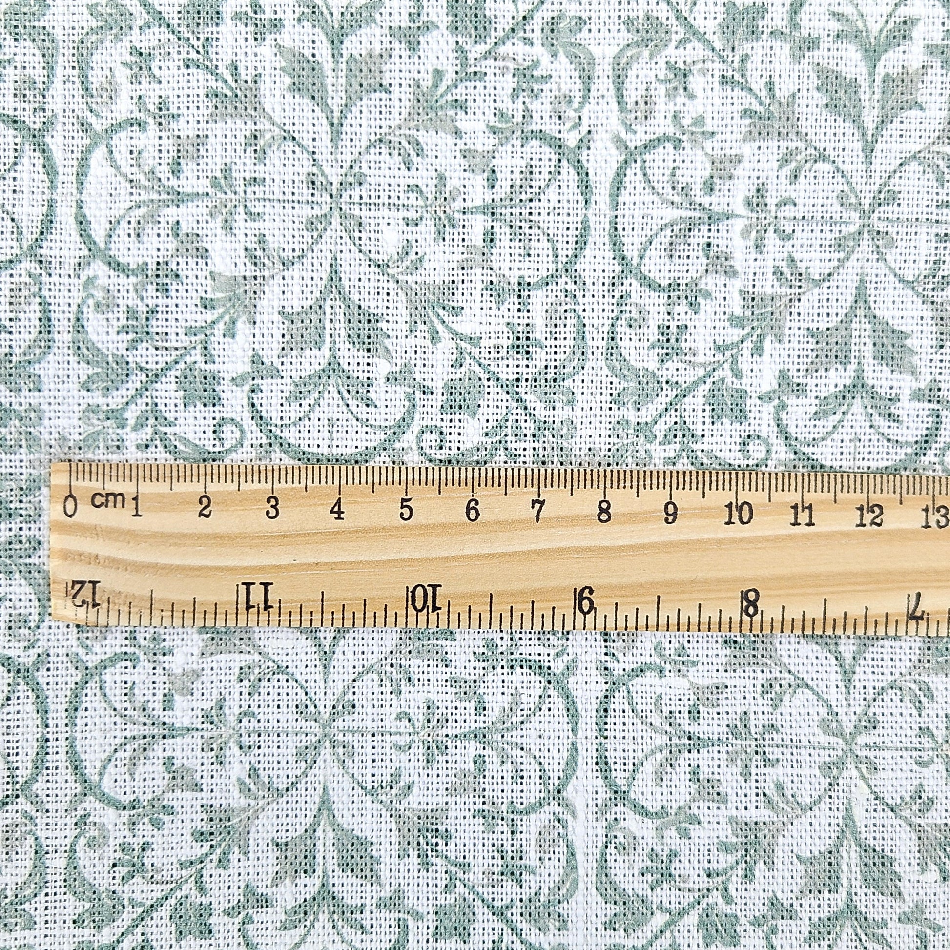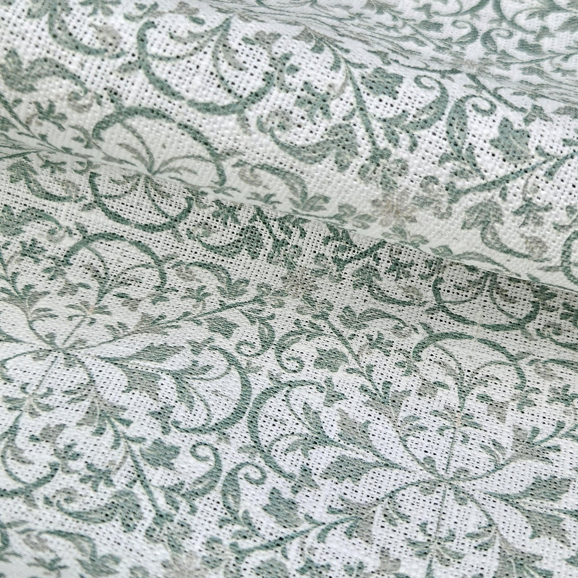 100% LINEN Fabric block print sage green on white - heavy linen fabric for upholstery home decor or medium for clothing 2559