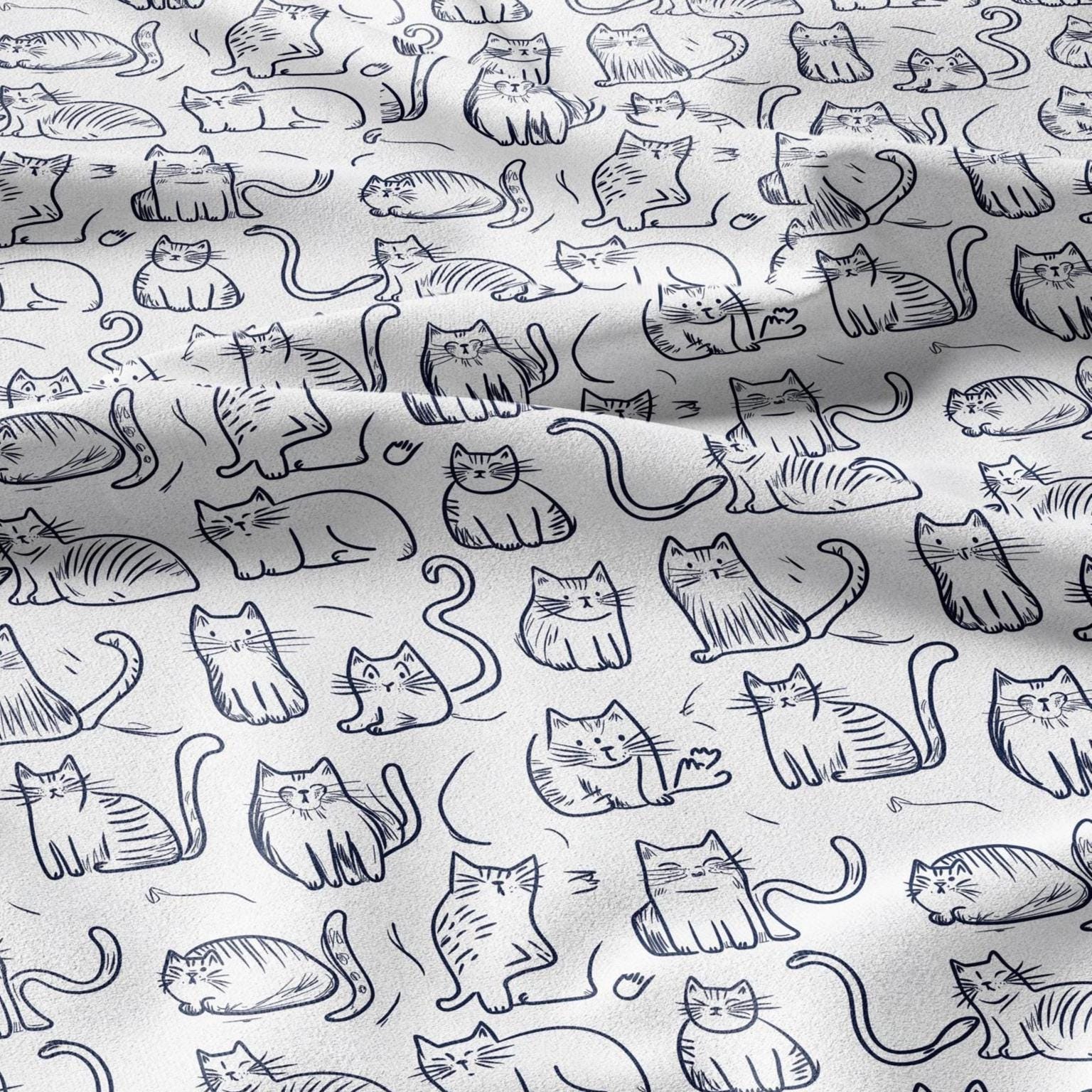 100% LINEN Fabric Cat print - Animal Modern vintage blue - upholstery curtains dress making 2140