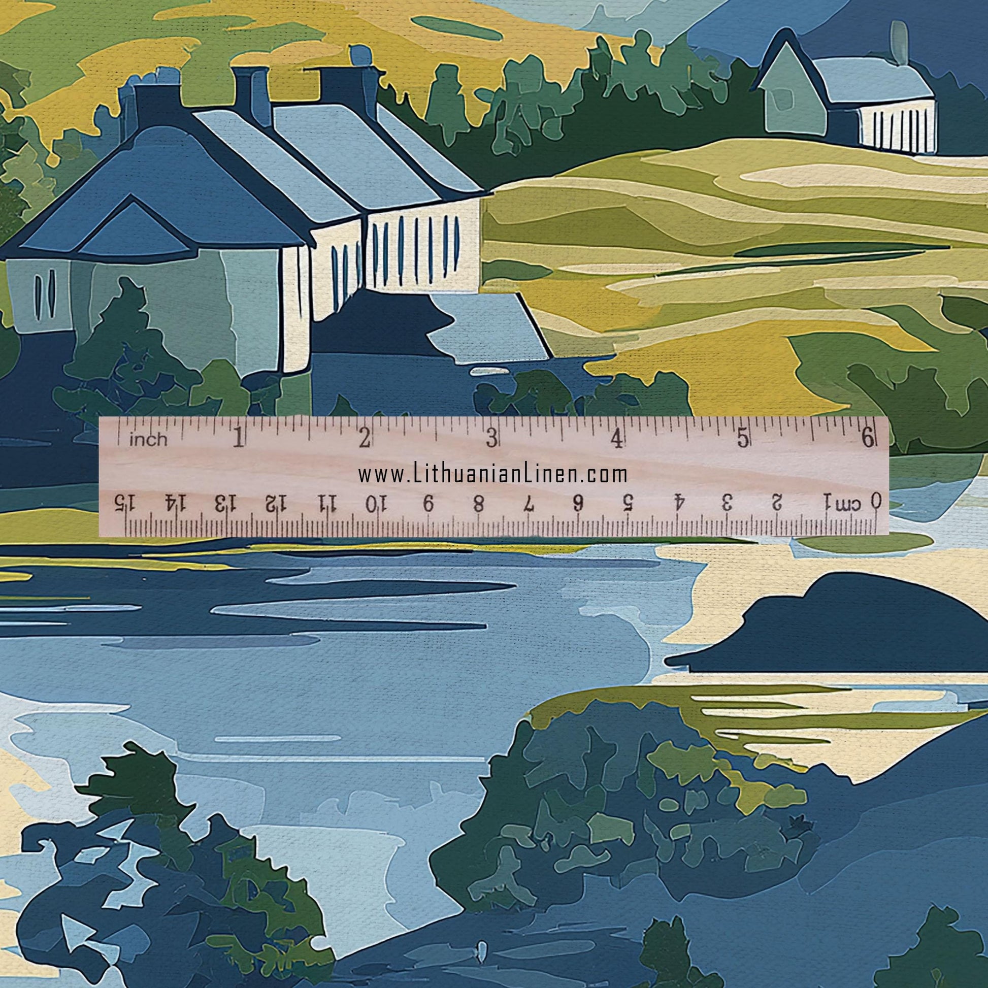 100% LINEN Fabric Countryside scenery -landscape linen fabric with green print - heavy linen fabric for upholstery home decor 2907