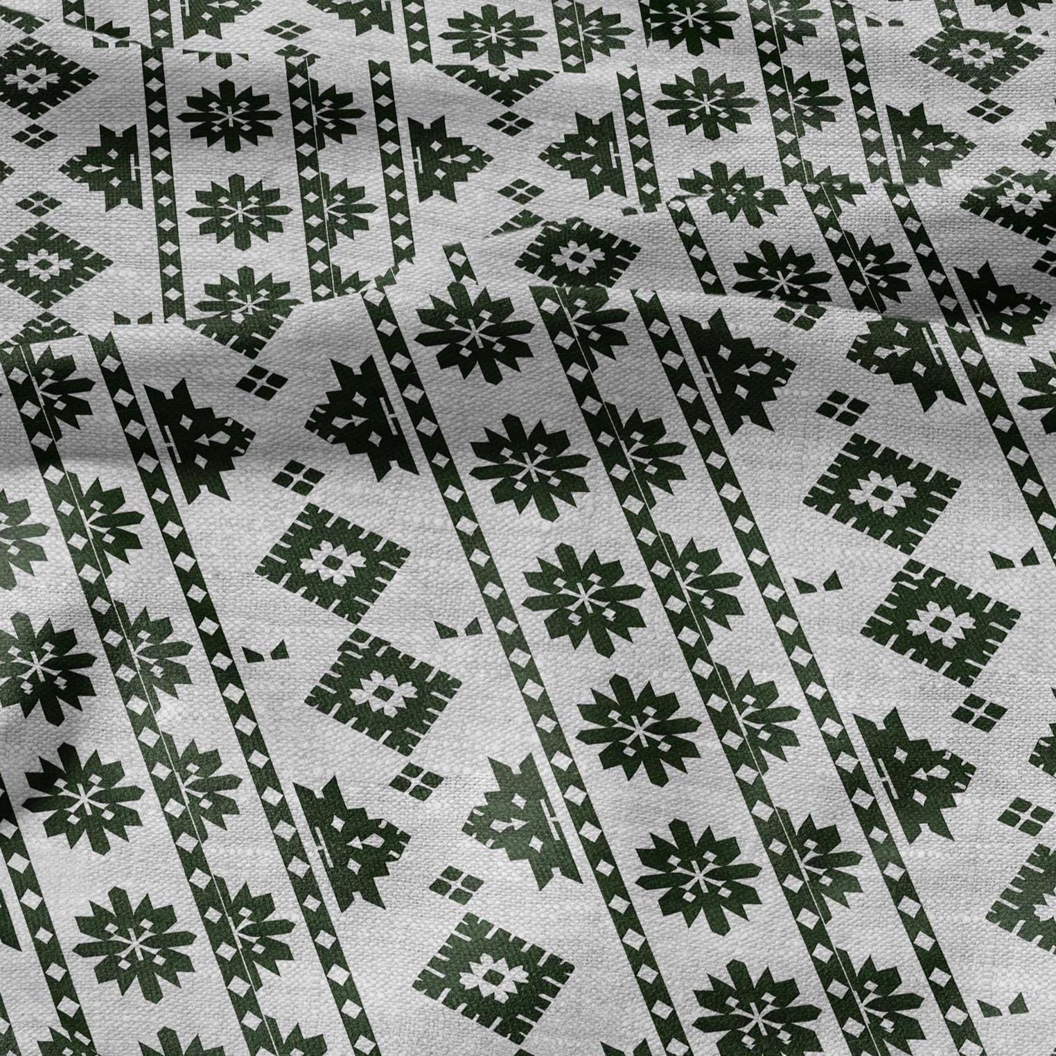 100% LINEN Fabric Ethno green stripes gray - geometric print on oatmeal linen for home decor sewign dress clothing 2822