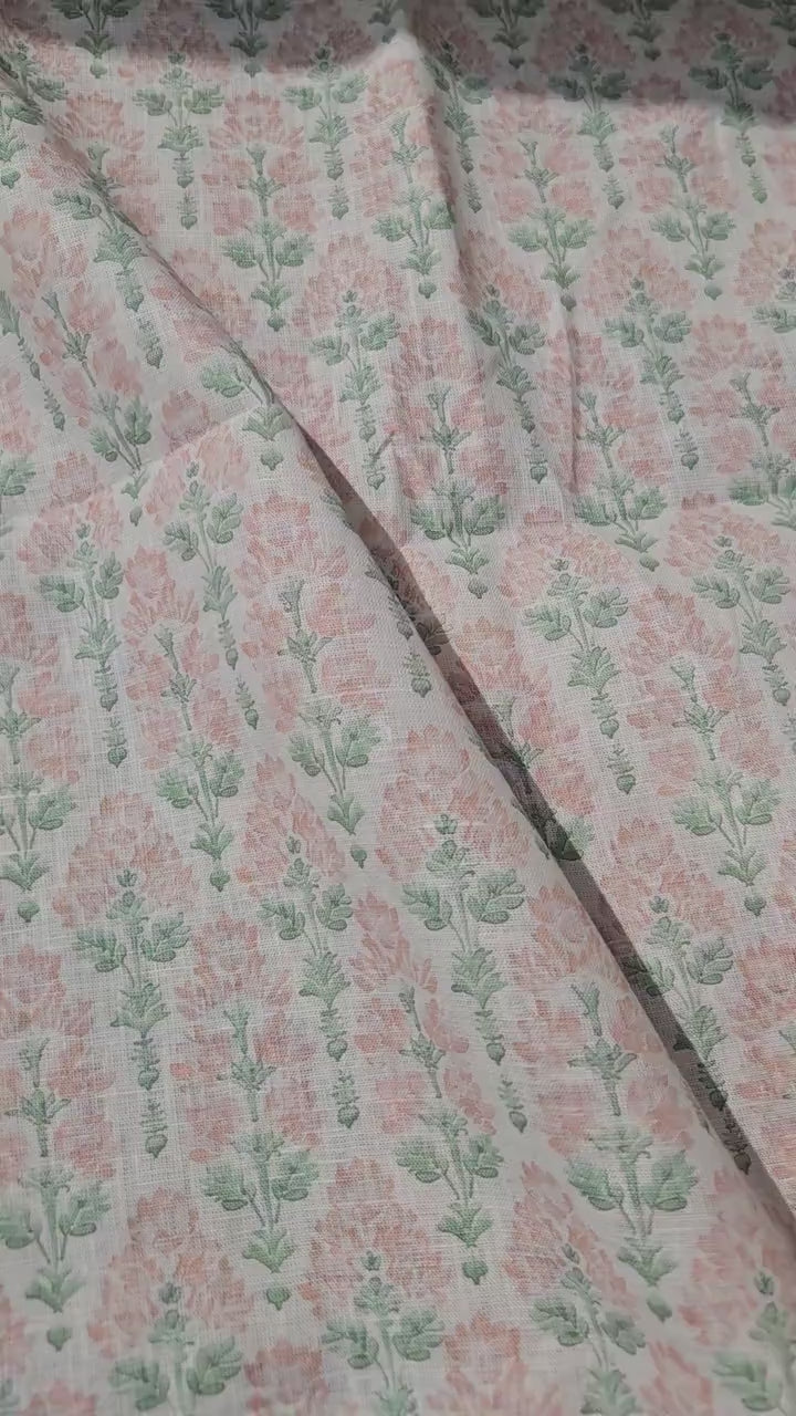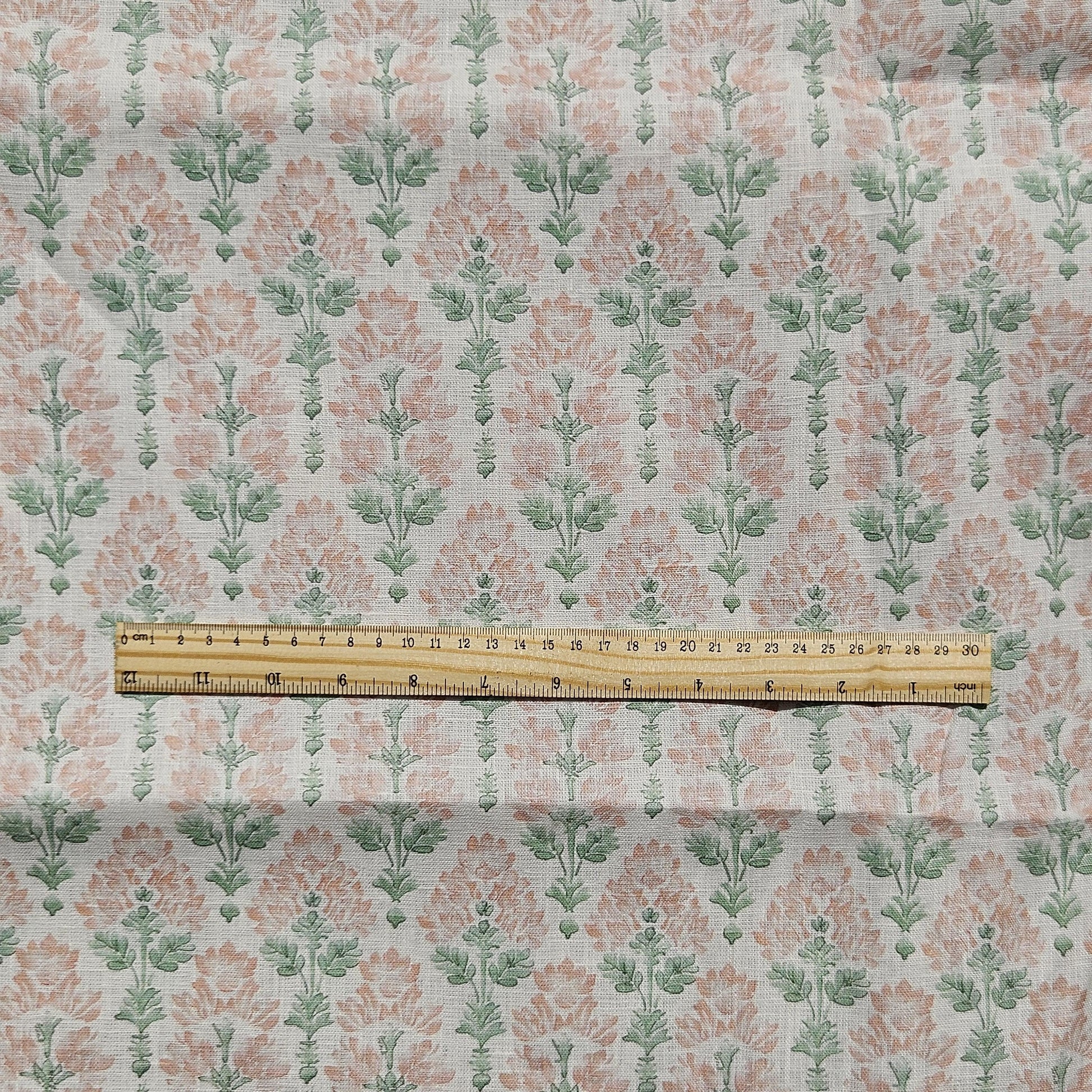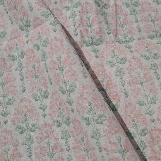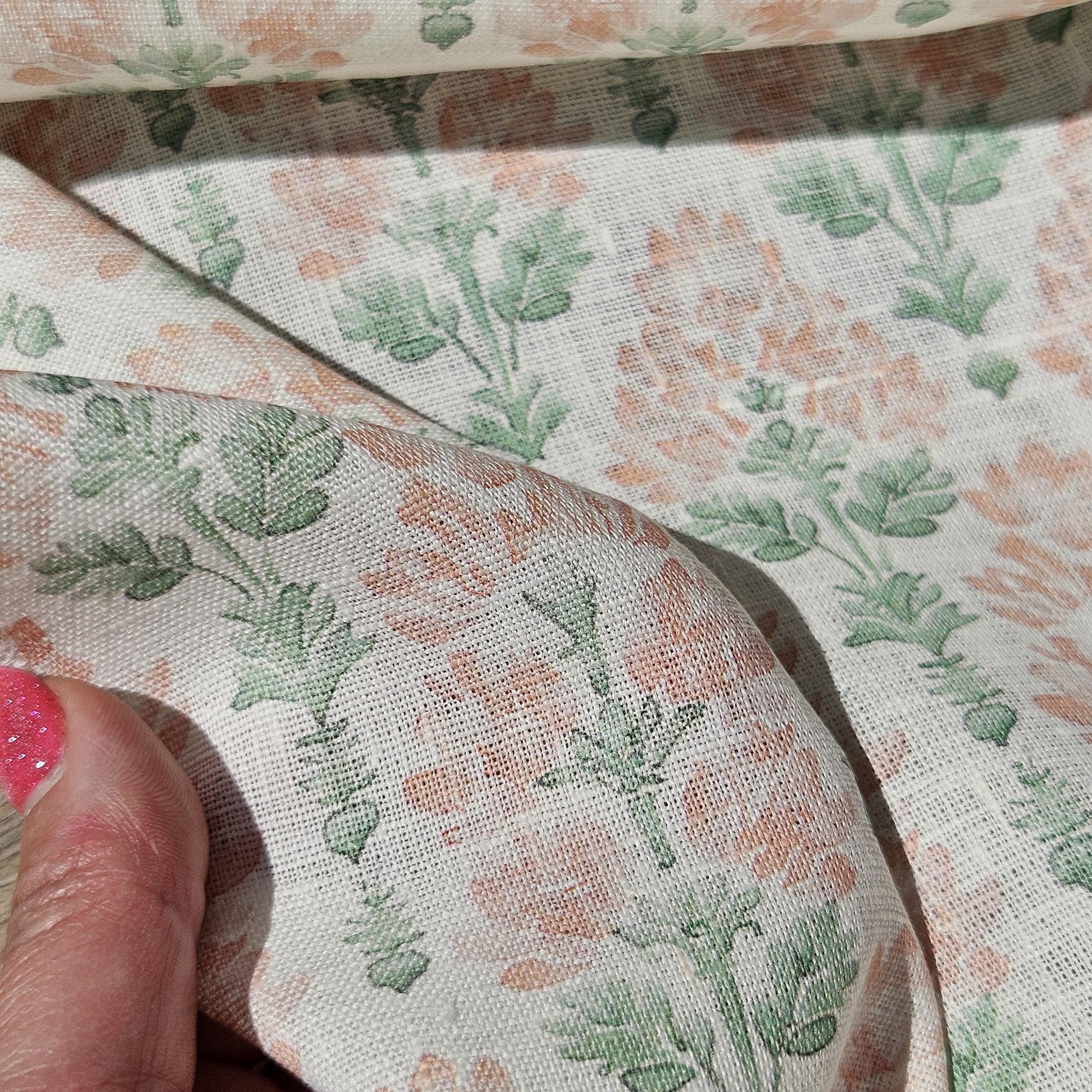 100% LINEN Fabric floral - Pastel Botanical block print fabric large flowers pink blue green for upholstery curtains home textile 2572