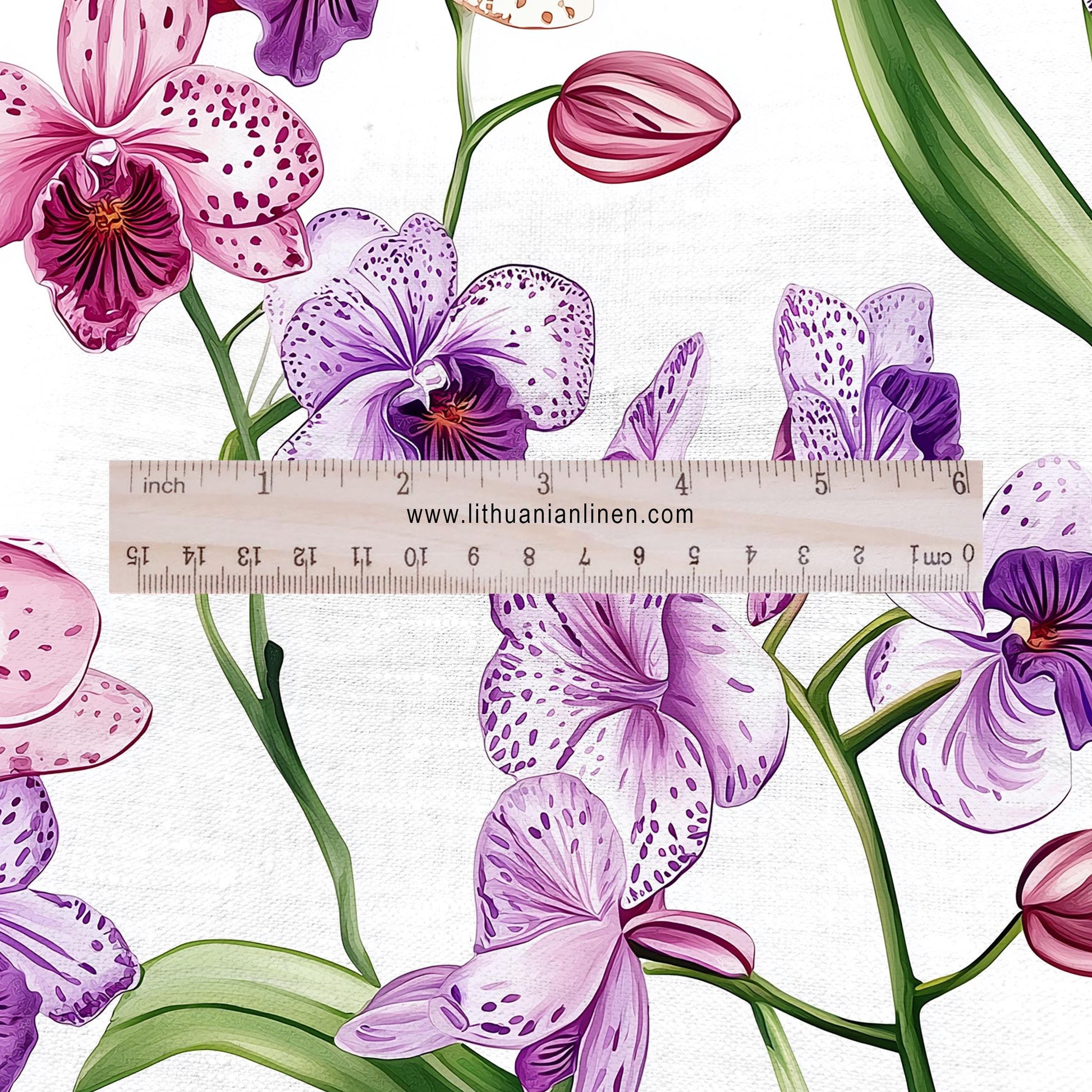 100% LINEN Fabric Floral pink purple orchid print - Hand Drawn Floral PINK Flower linen fabric upholstery home decor curtains pillowcases