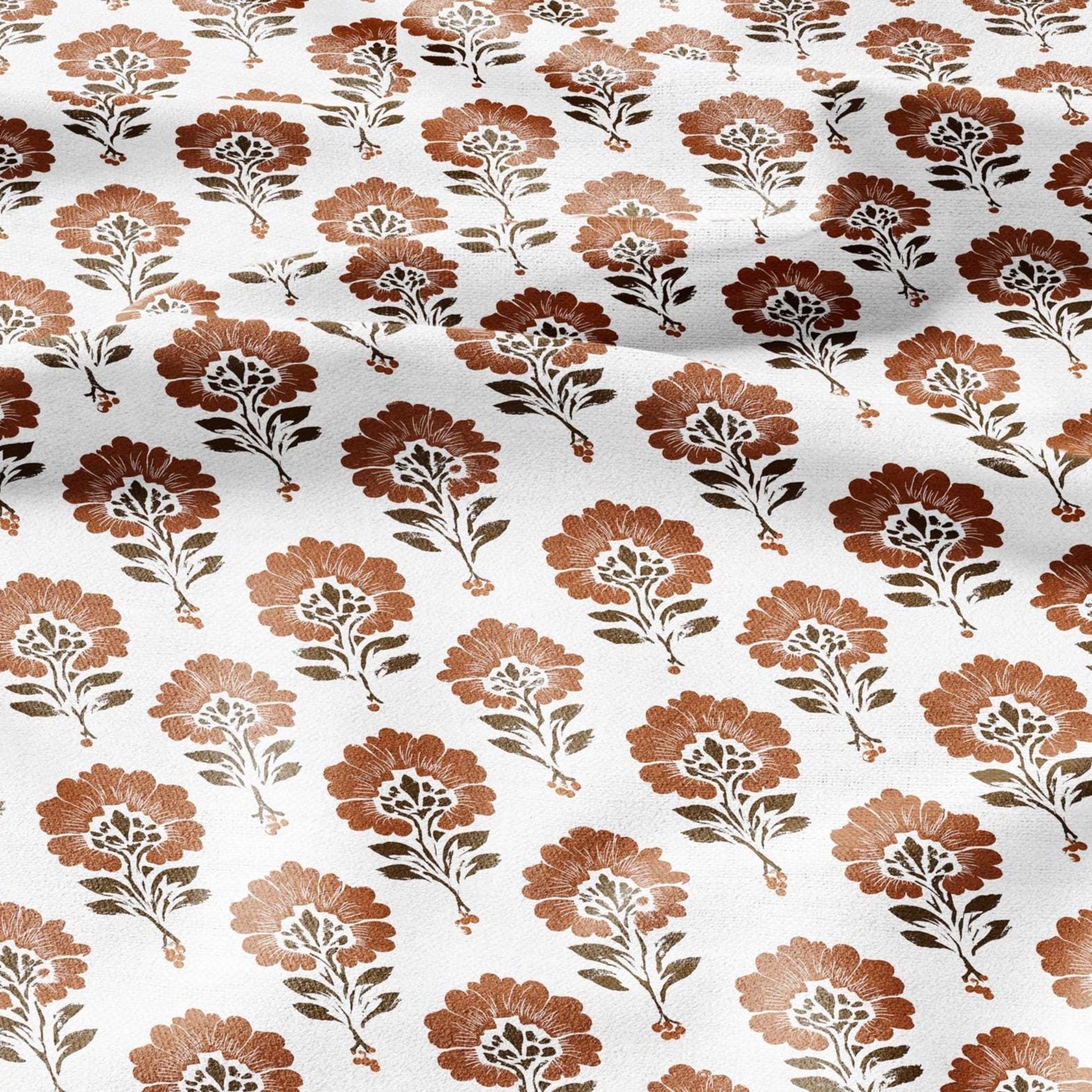 100% LINEN Fabric floral print - brown white flower block print linen heavy for upholstery home decor - medium for dress making 2827