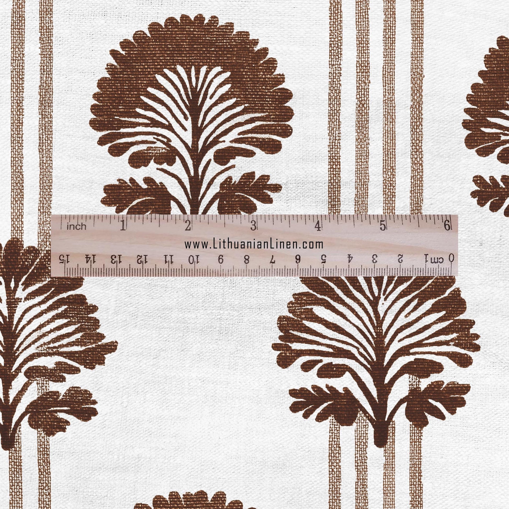 100% LINEN Fabric floral print - brown white stripe block print linen heavy for upholstery home decor - medium for dress making 2800