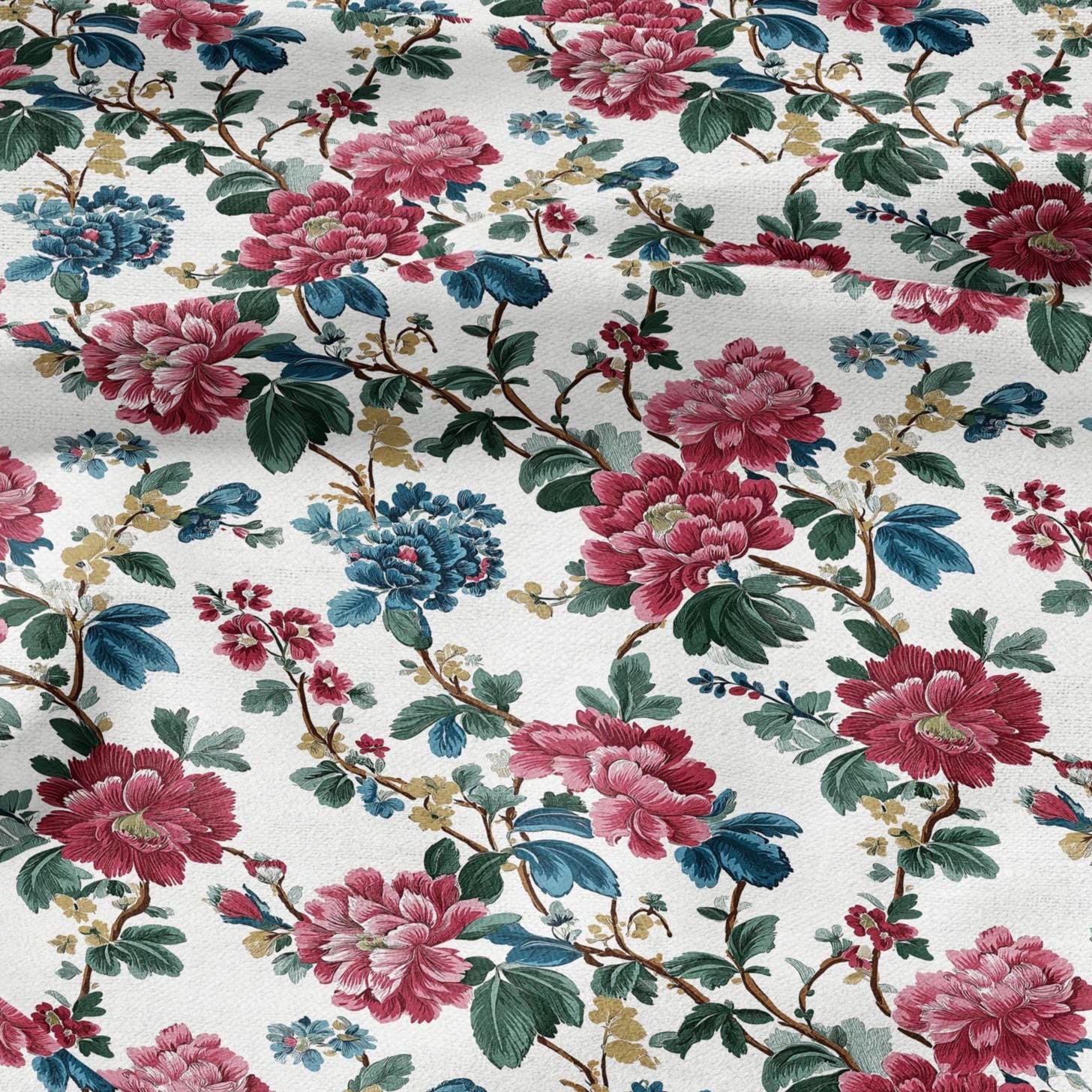 100% LINEN Fabric floral print - Grandmillennial - peony Modern vintage flower upholstery curtains dress making 2937