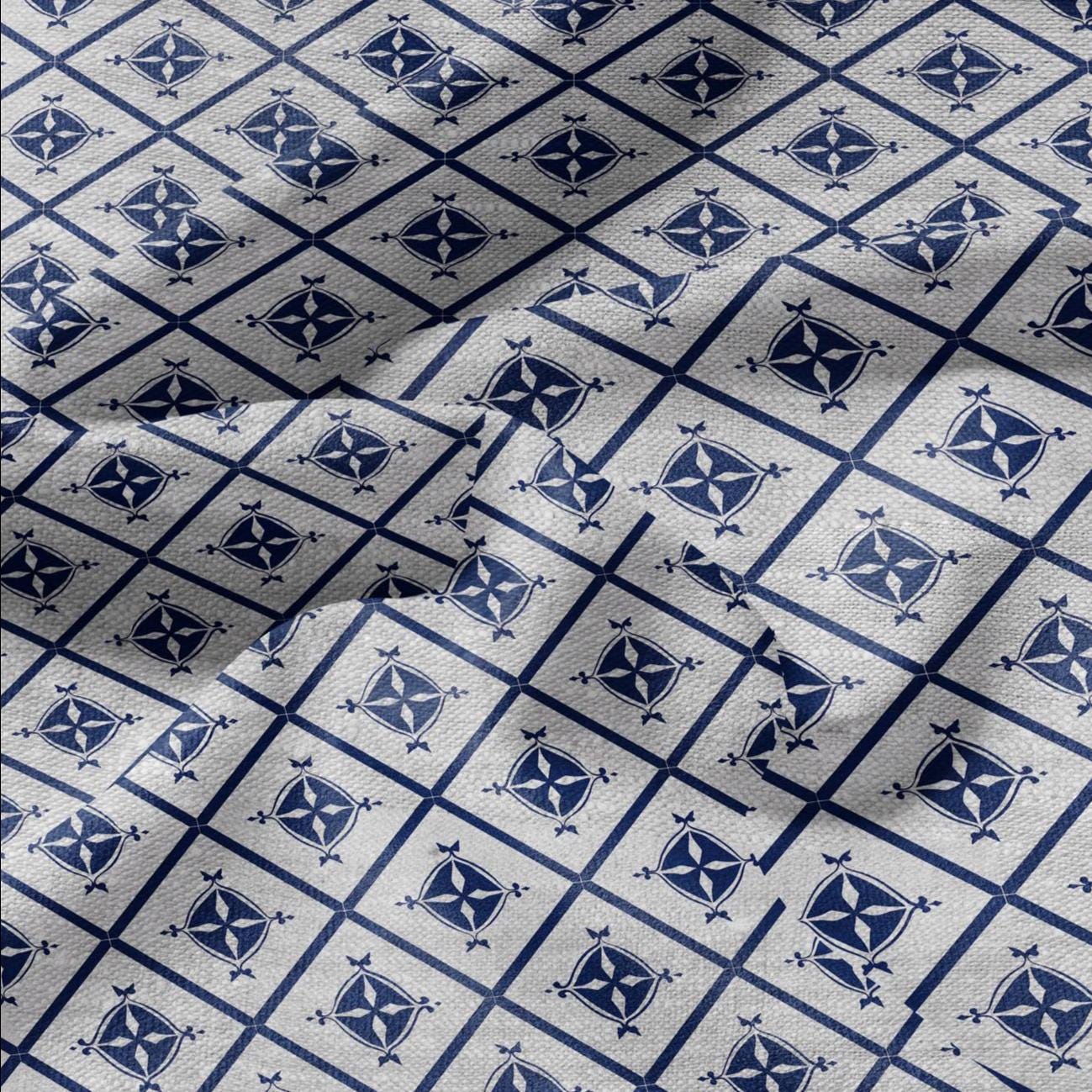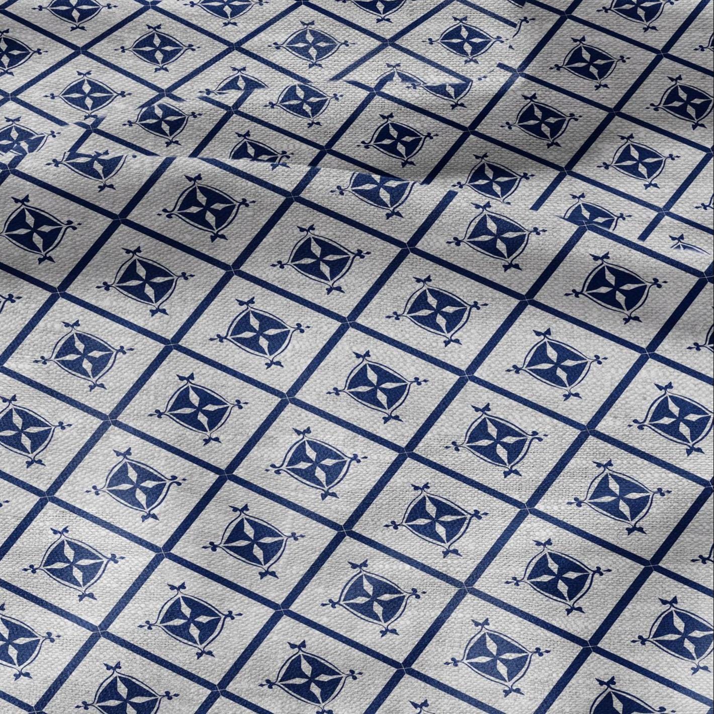 100% LINEN Fabric indigo blue Diamond stripes - geometric print on oatmeal linen for home decor sewign dress clothing 2970