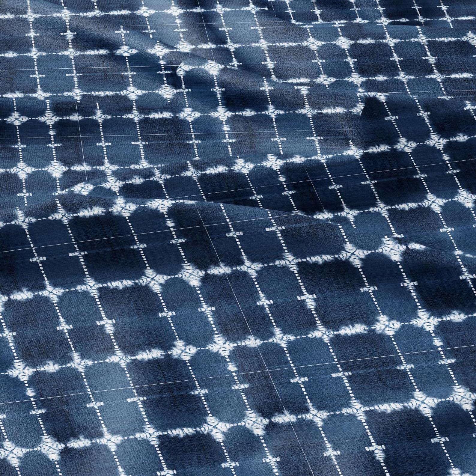 100% LINEN Fabric indigo blue print - Shibori abstract squares - upholstery curtains dress making 2982