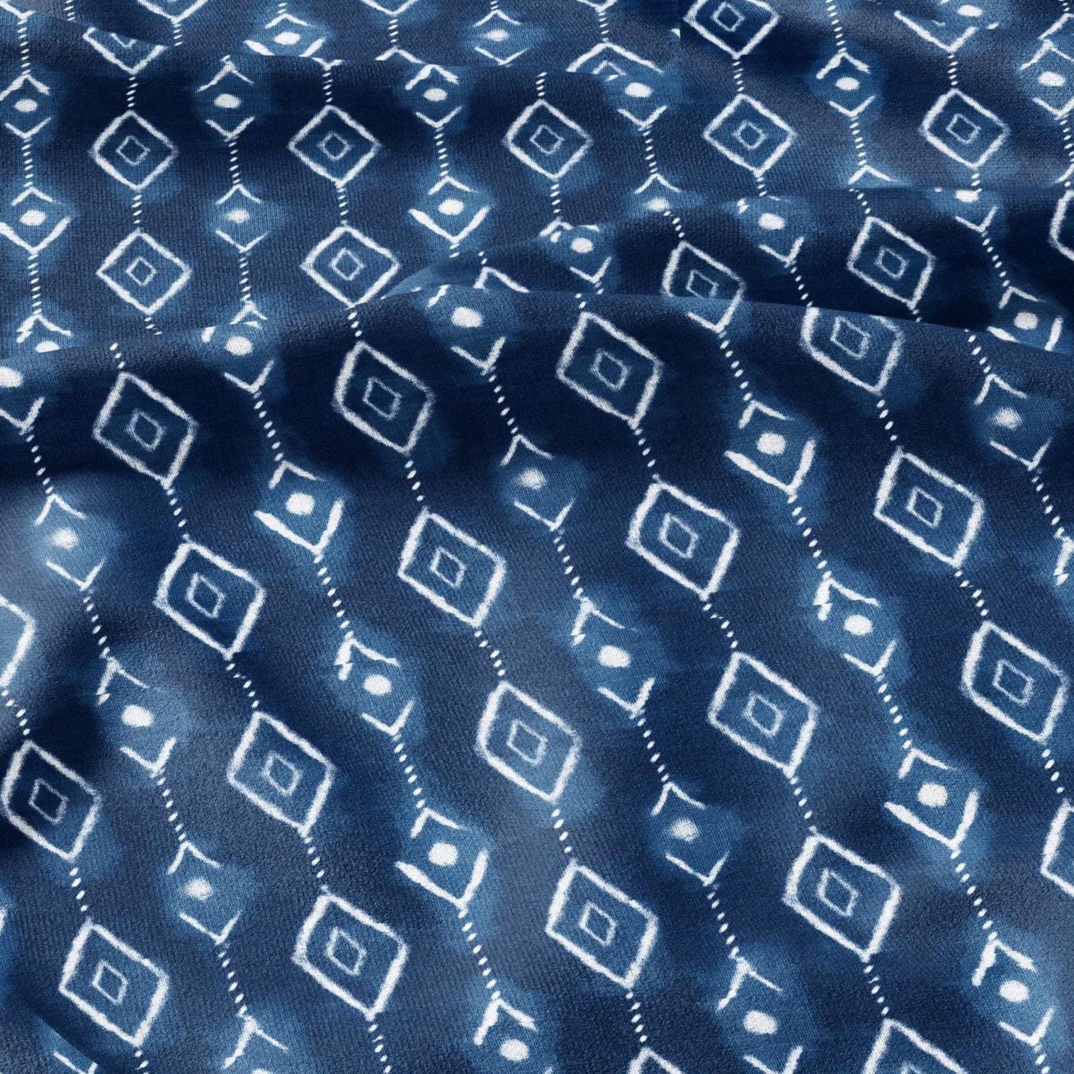 100% LINEN Fabric indigo blue print - Shibori abstract stripe square - upholstery curtains dress making 2985