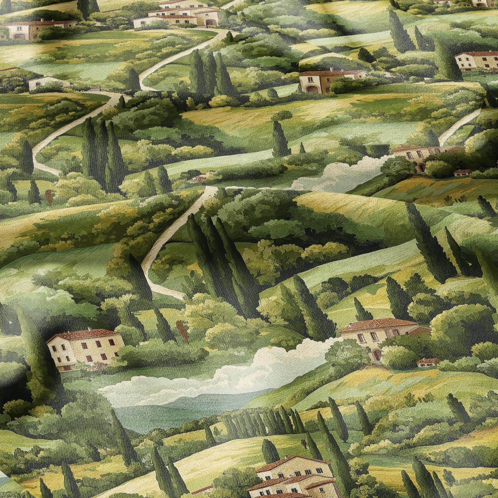 100% LINEN Fabric Italian Tuscany scenery, linen fabric with green print, heavy linen fabric for upholstery home decor tablecloth