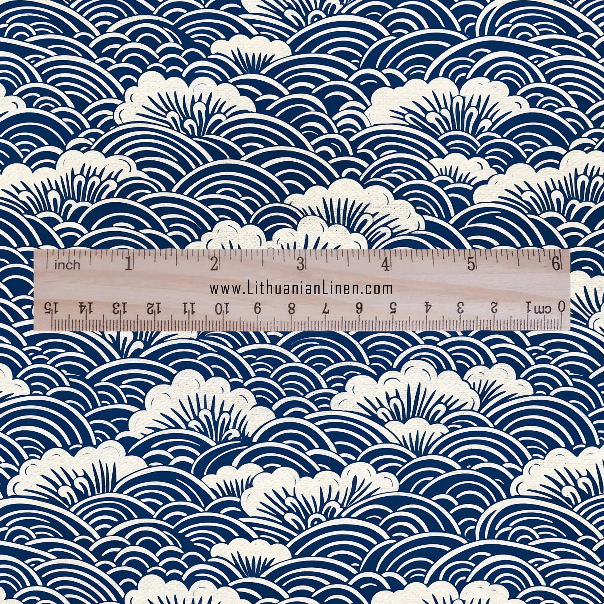 100% LINEN fabric Japanese sea print - for upholstery home textile dress making 2150