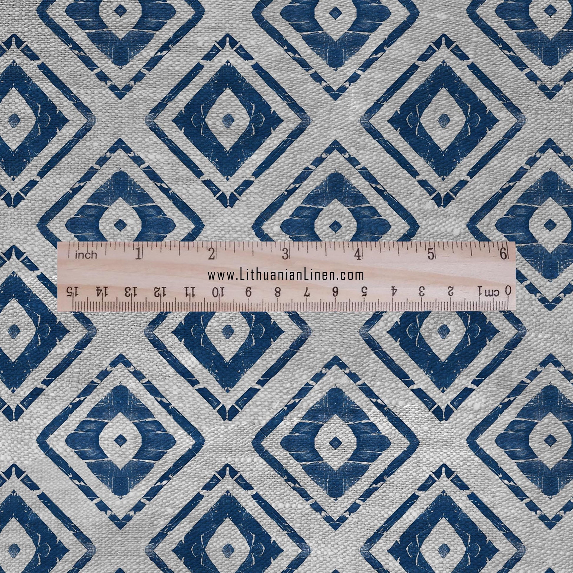 100% LINEN Fabric leaves print - Grandmillennial indigo blue - Modern vintage geometric block print upholstery curtains dress making 2659