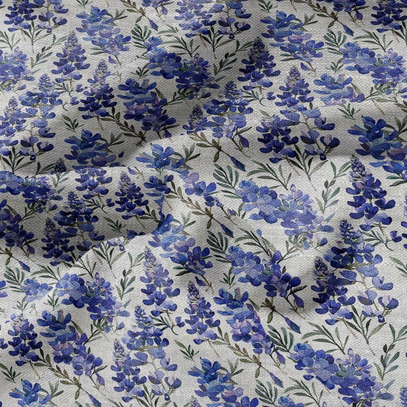 100% LINEN Fabric Lupin blue flower print on oatmeal linen - modervintage floral - sewing clothing home textile light upholstery 2972