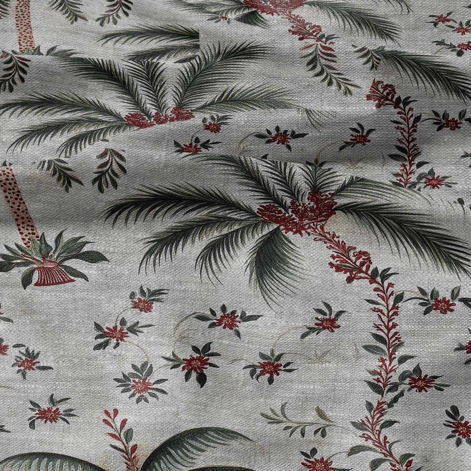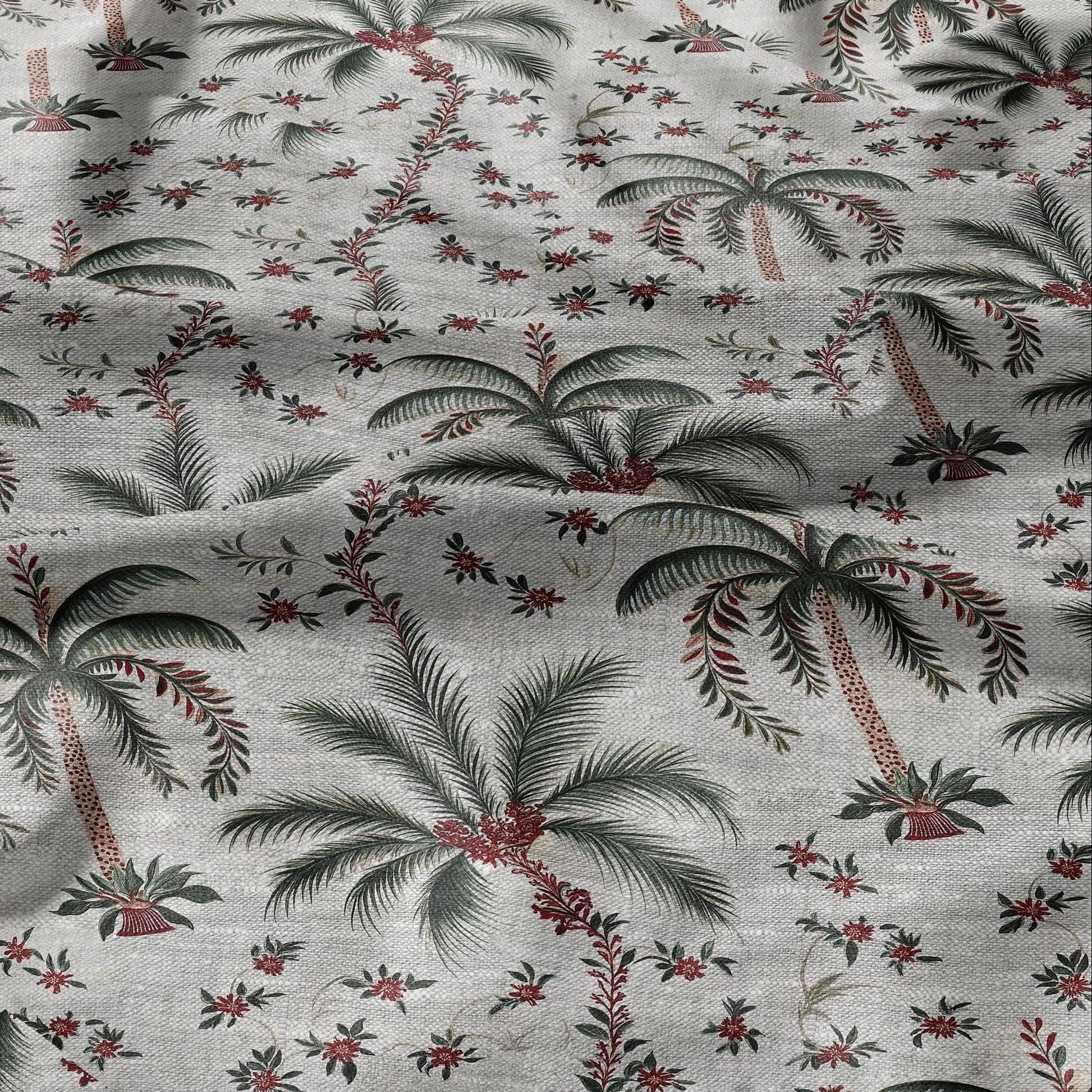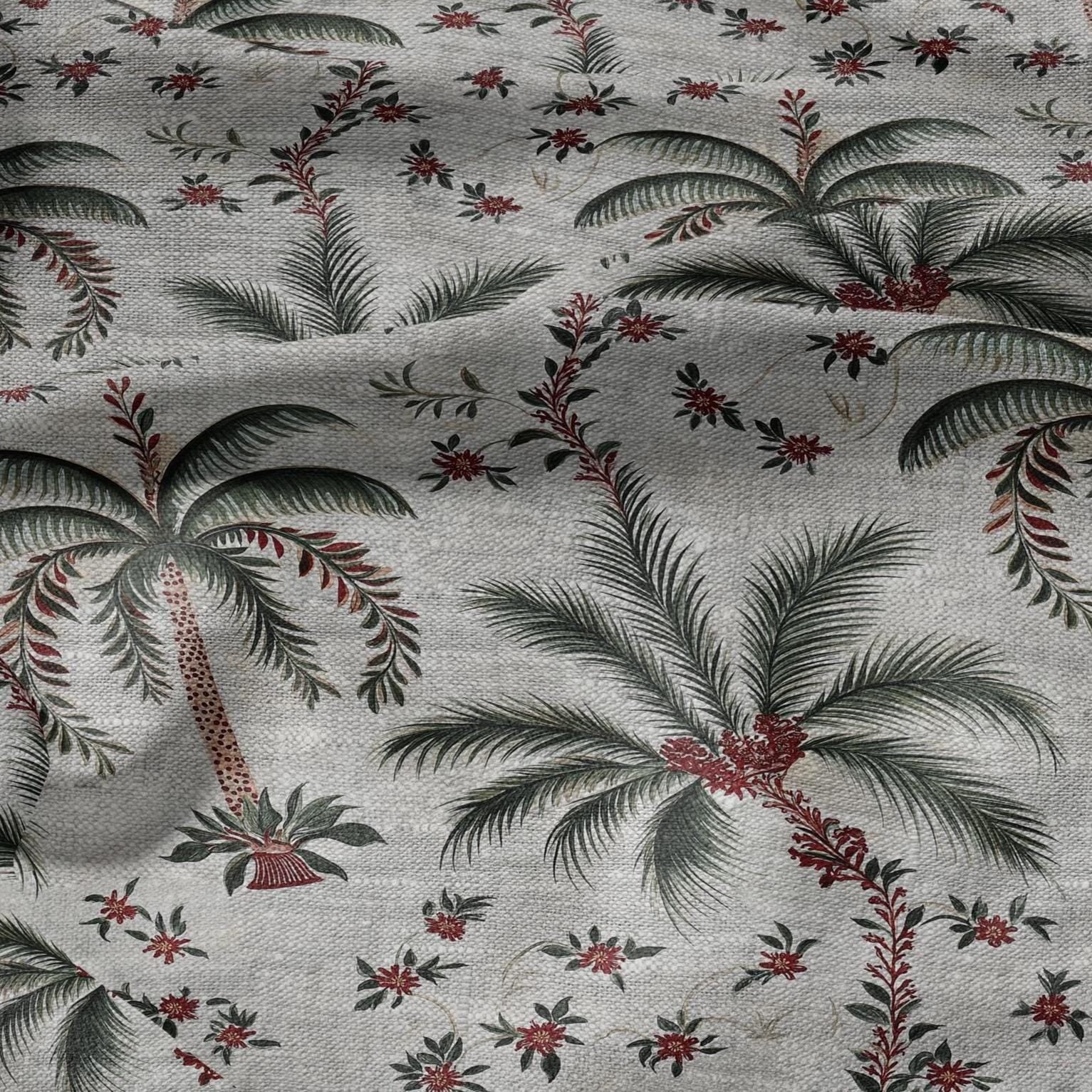 100% LINEN Fabric Palm tree print flowers - oatmeal linen fabric art deco print - fabric for home decor upholstery