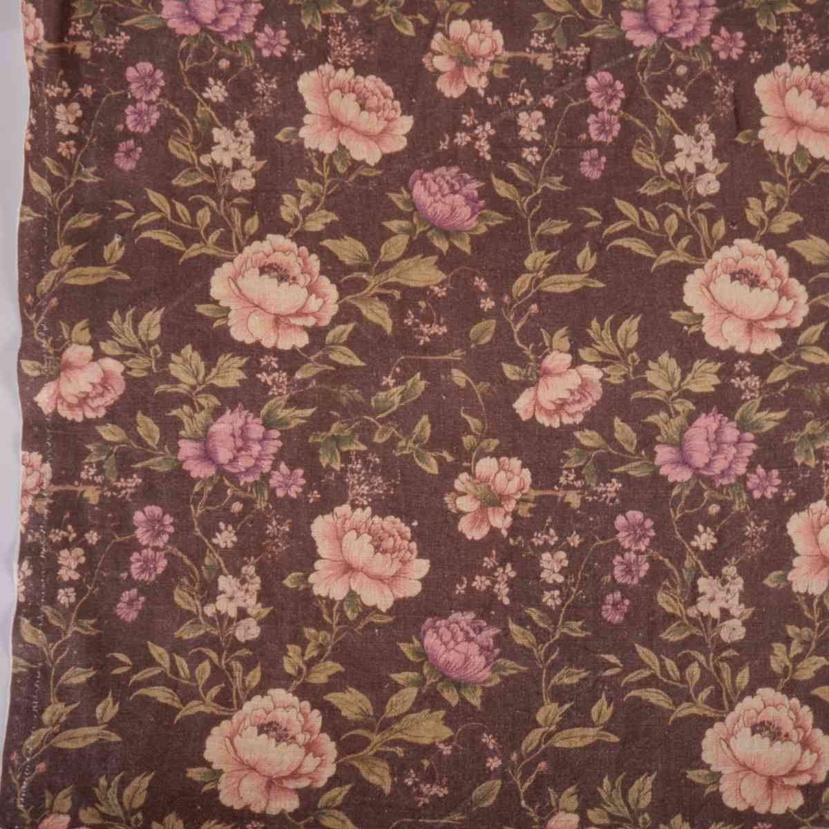 100% LINEN Fabric Provance peonies brown, linen fabric with floral print, heavy linen fabric for upholstery home decor clothing