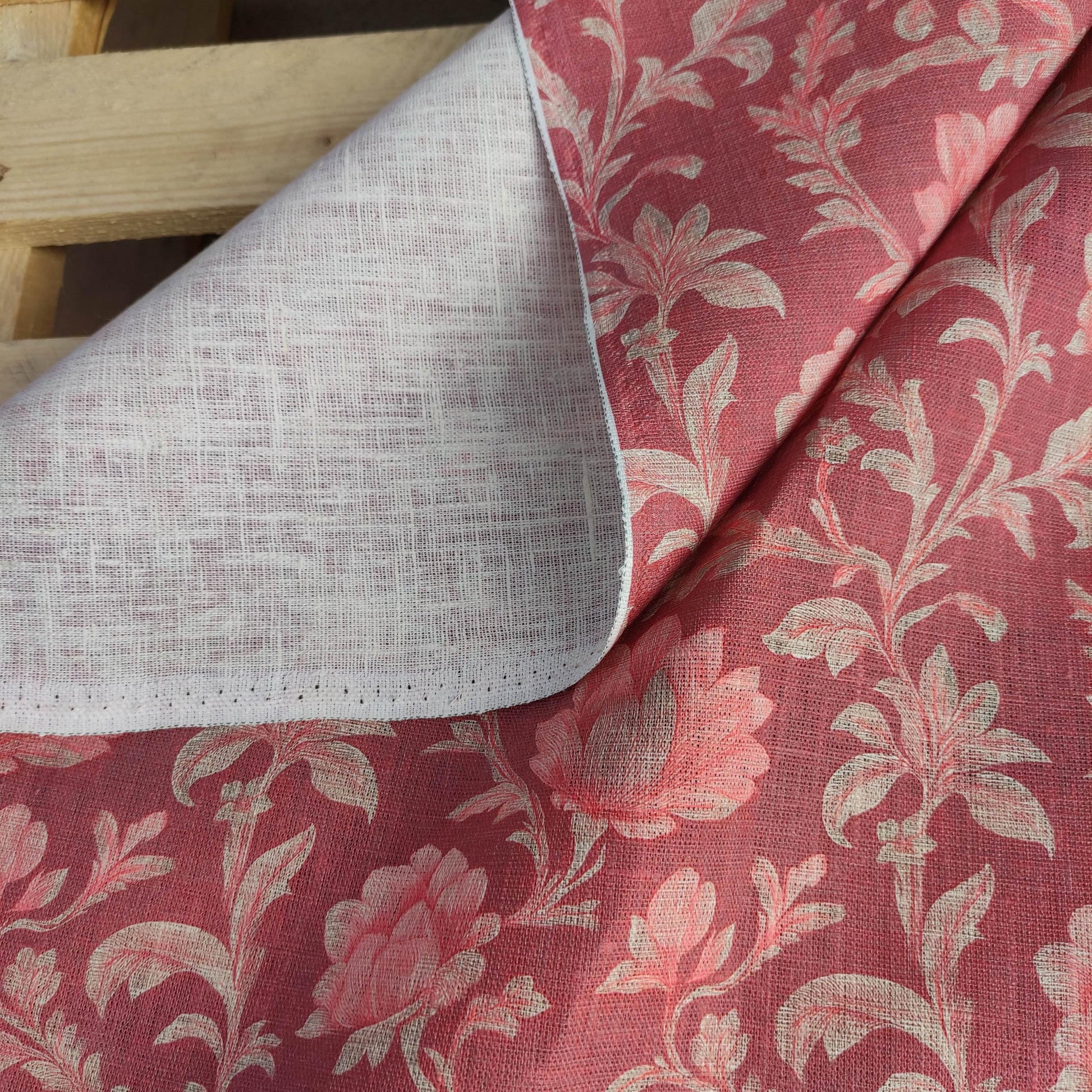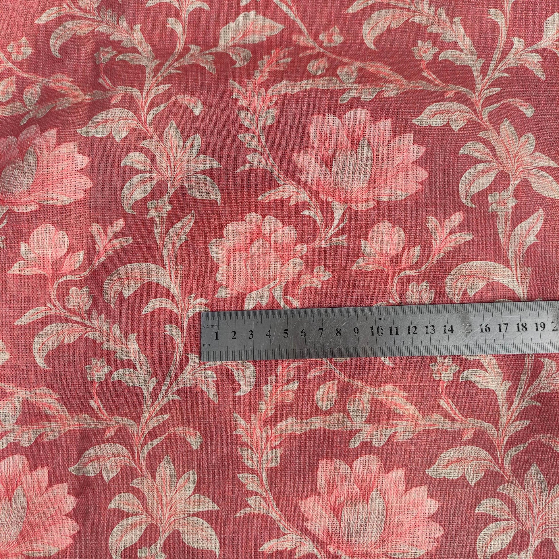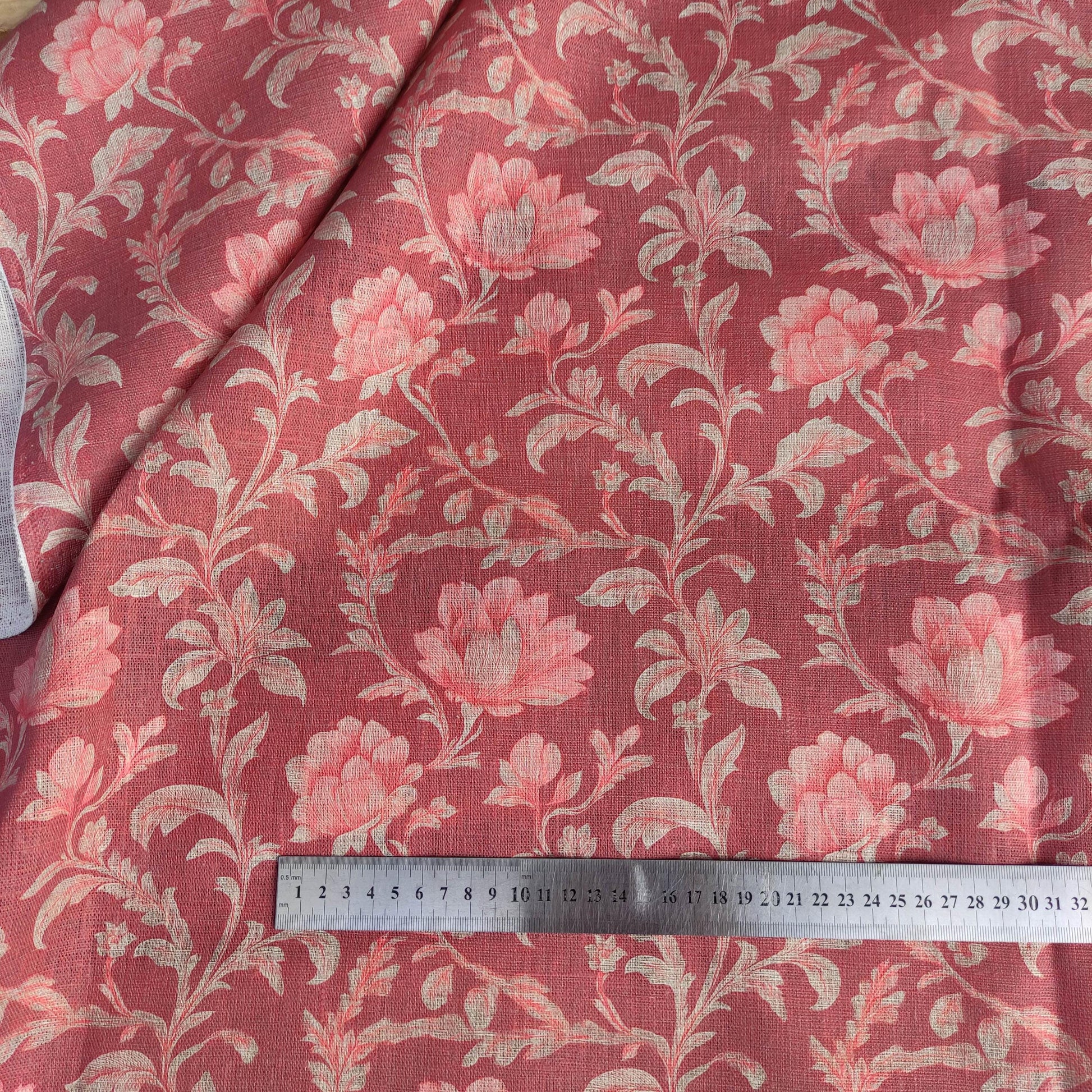 100% LINEN Fabric red floral print on linen, botanical print fabric for upholstery home decor curtains pillows cushions