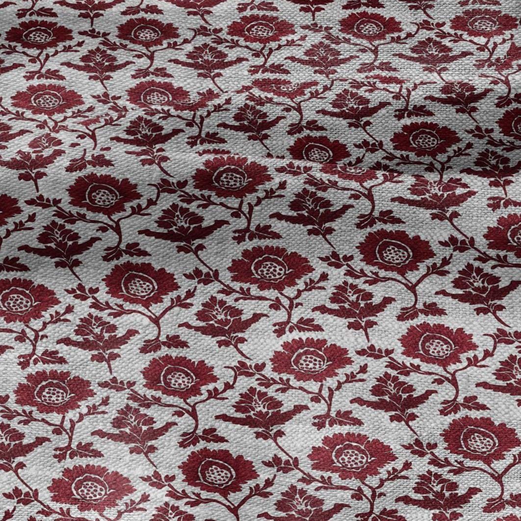100% LINEN Fabric red flower print - floral red gray print on oatmeal linen for home decor sewing dress clothing 2198