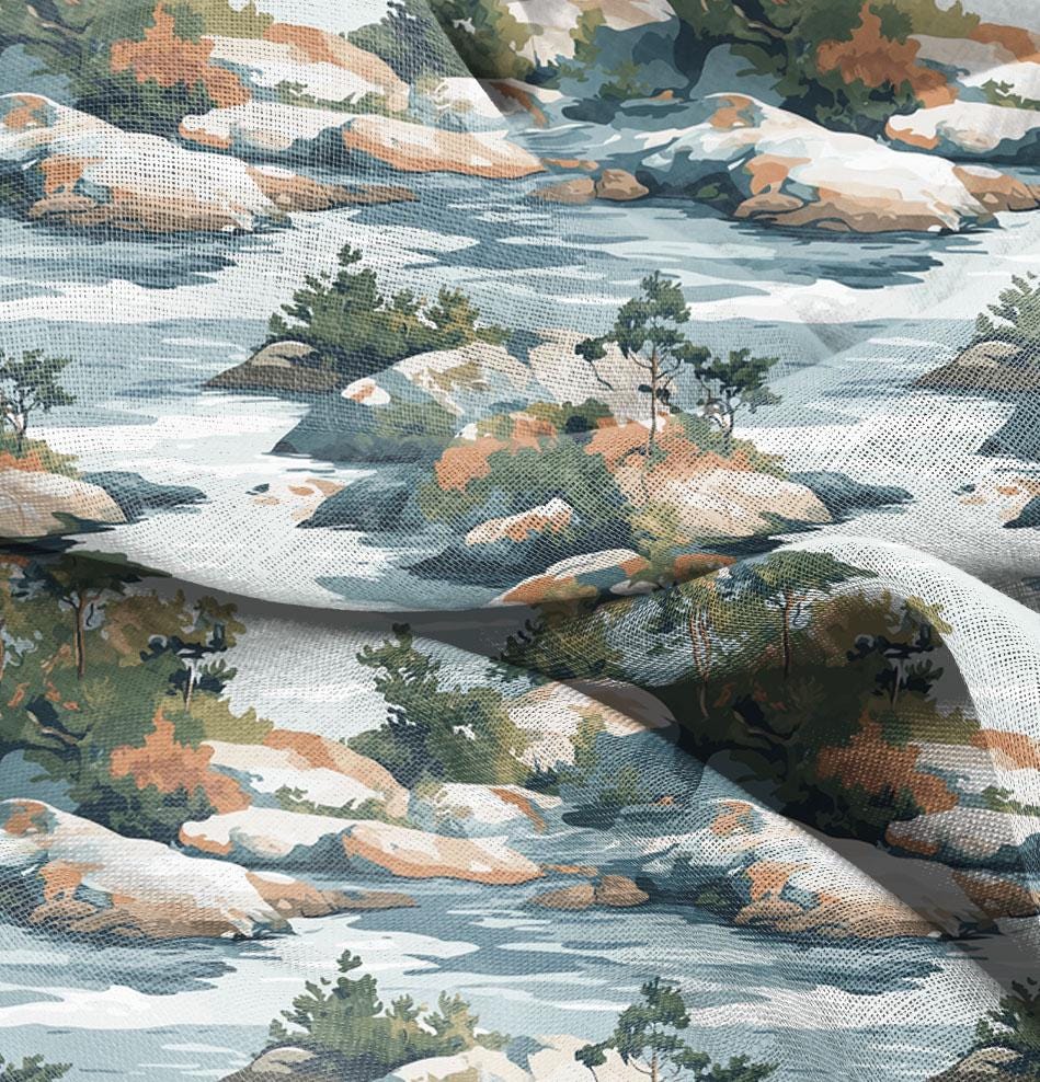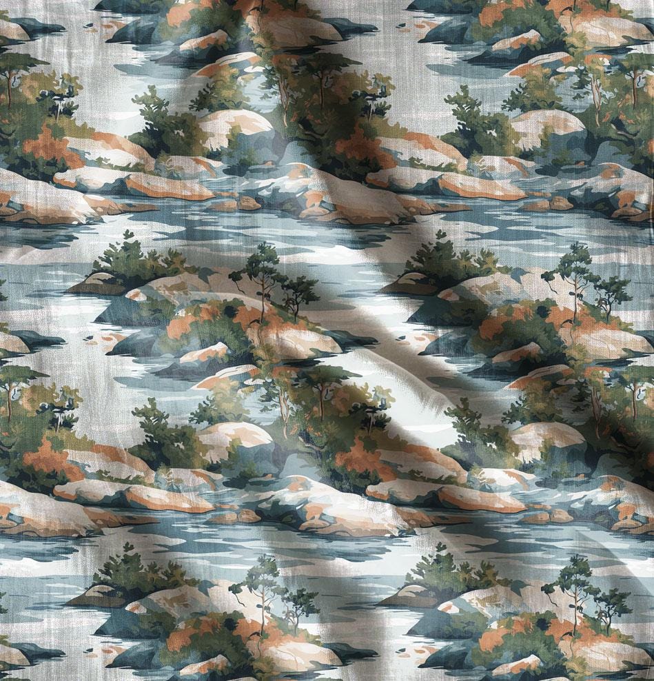With a Swedish archipelago landscape pattern , this 100% linen fabric is wonderfully modern and makes a chic statement. One of a kind material with those perfect imperfections that add to the beauty and character.