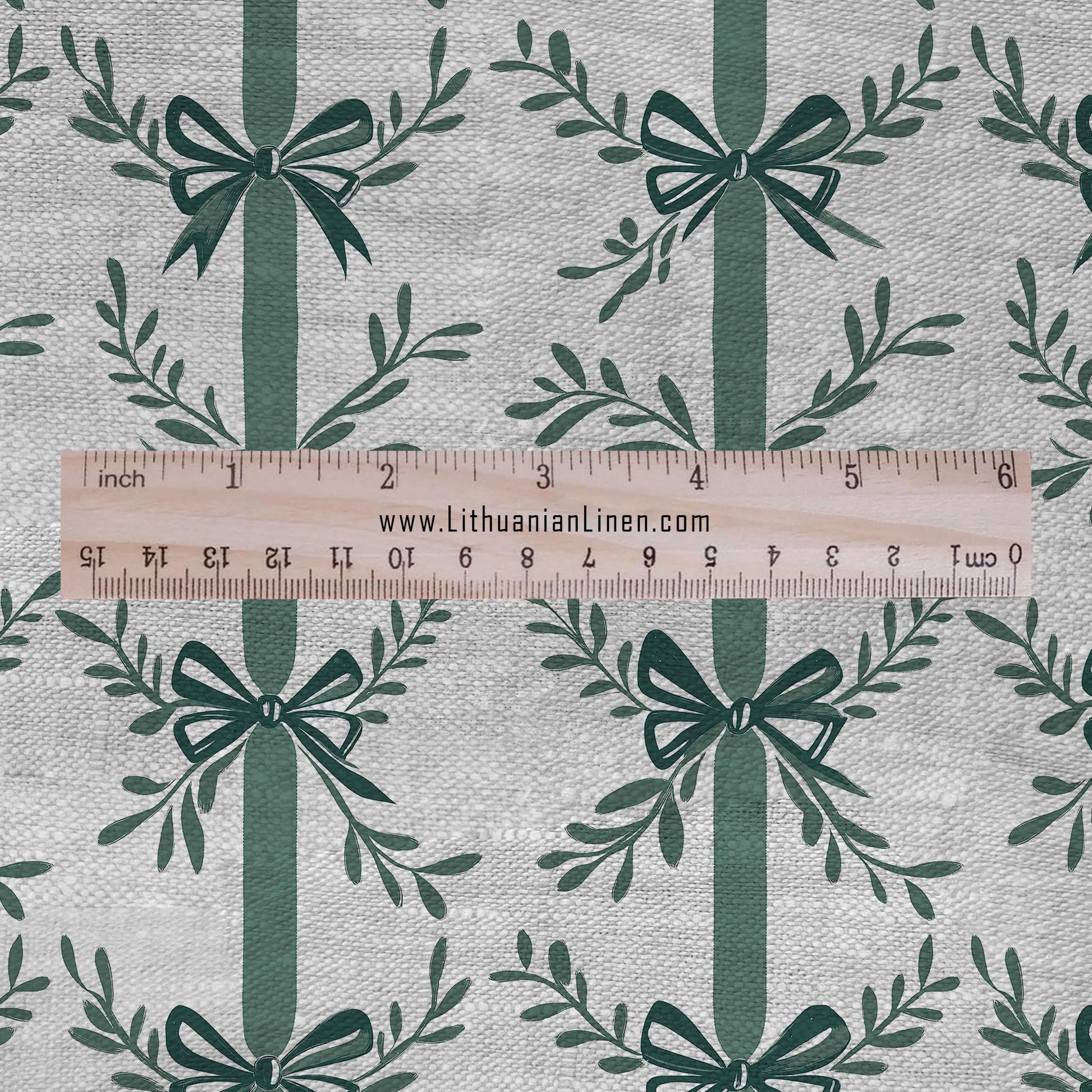 100% LINEN Fabric stripe bow holidays block print on oatmeal linen - French linen floral upholstery 2129