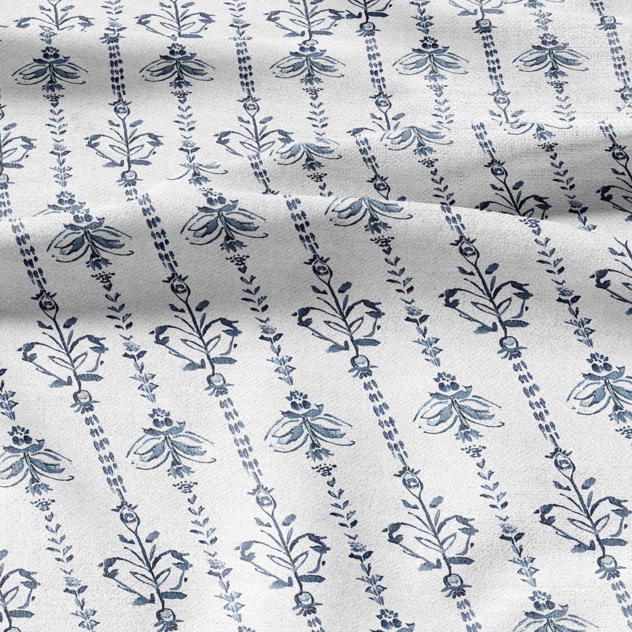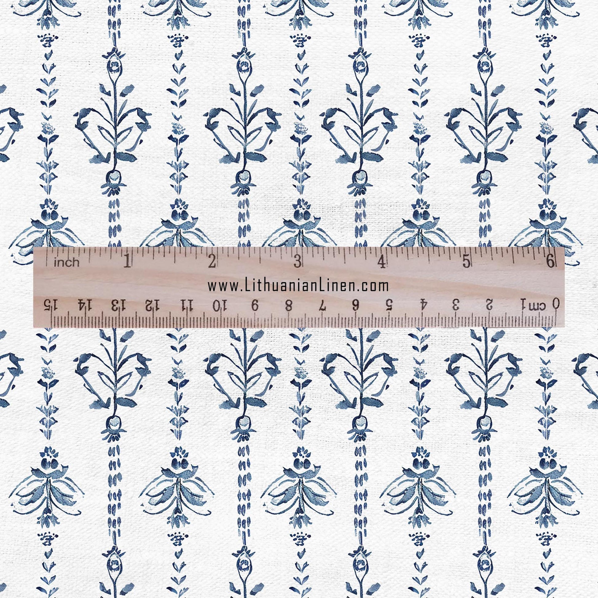 100% LINEN Fabric stripe print blue linen - floral fabric for upholstery home decor dress making 2359