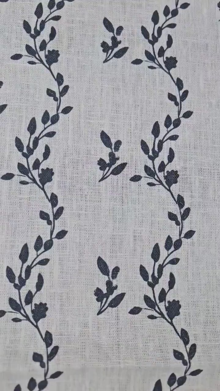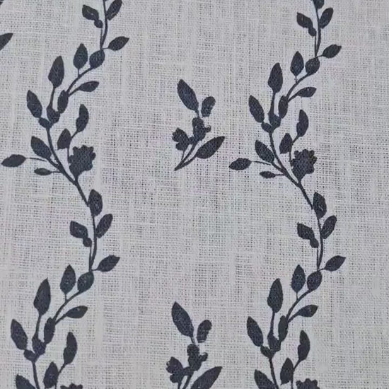 100% LINEN Fabric Striped floral indigo blue - block print vinesprint for upholstery curtains dress making 2642