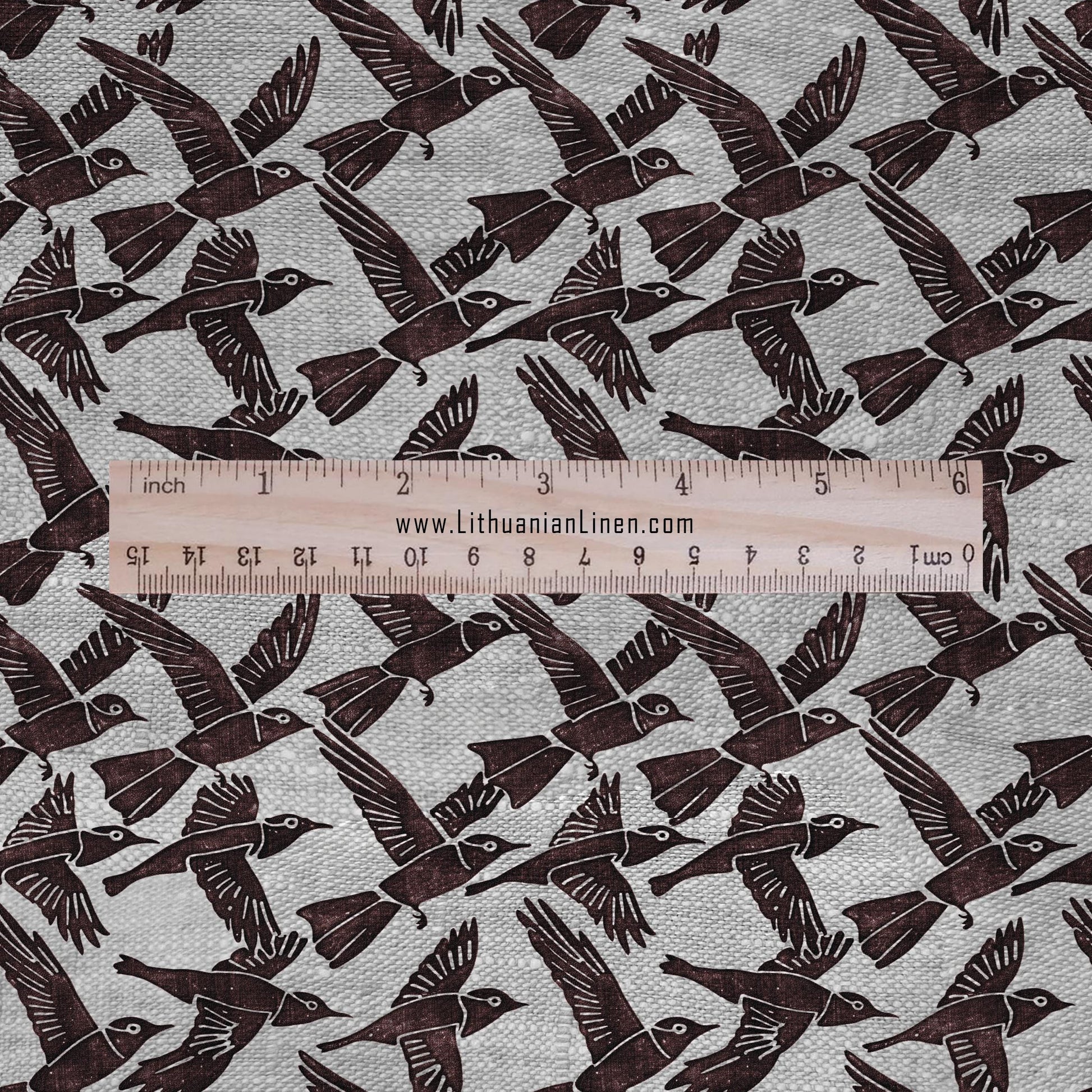 100% LINEN Fabric Swallow print -Birds brown on oatmeal linen - block print upholstery curtains dress making 2693