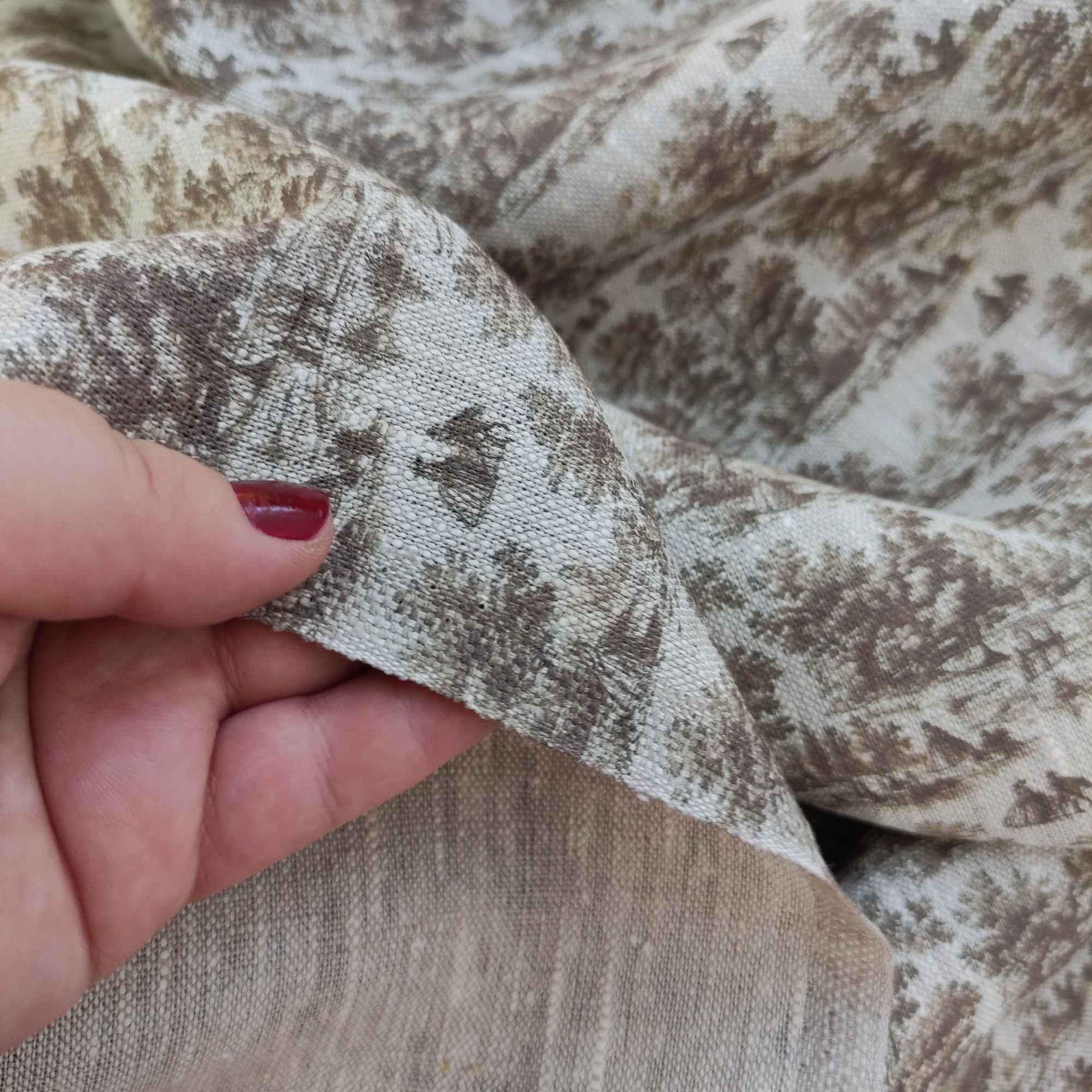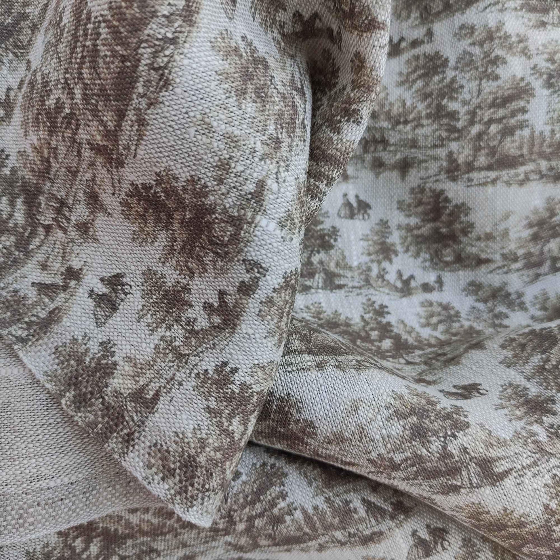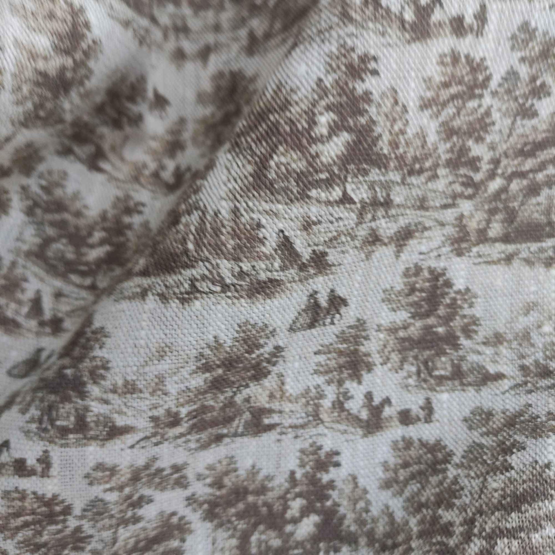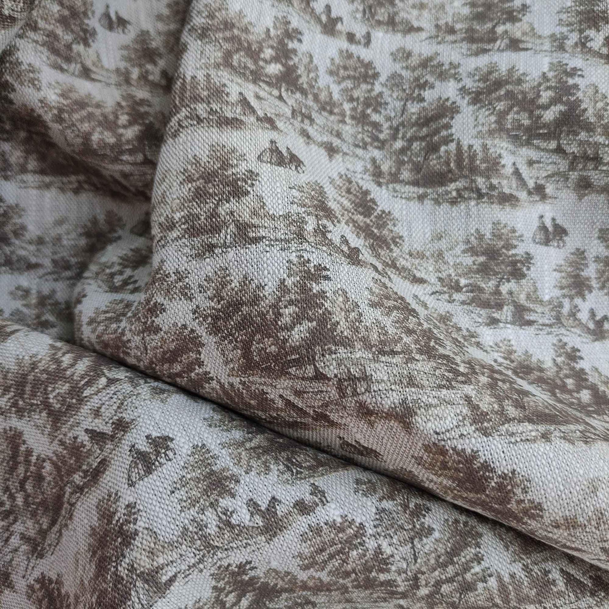100% LINEN Fabric Toile de Jouy brown Countryside, oatmeal linen fabric with brown print, French linen fabric upholstery home decor curtains