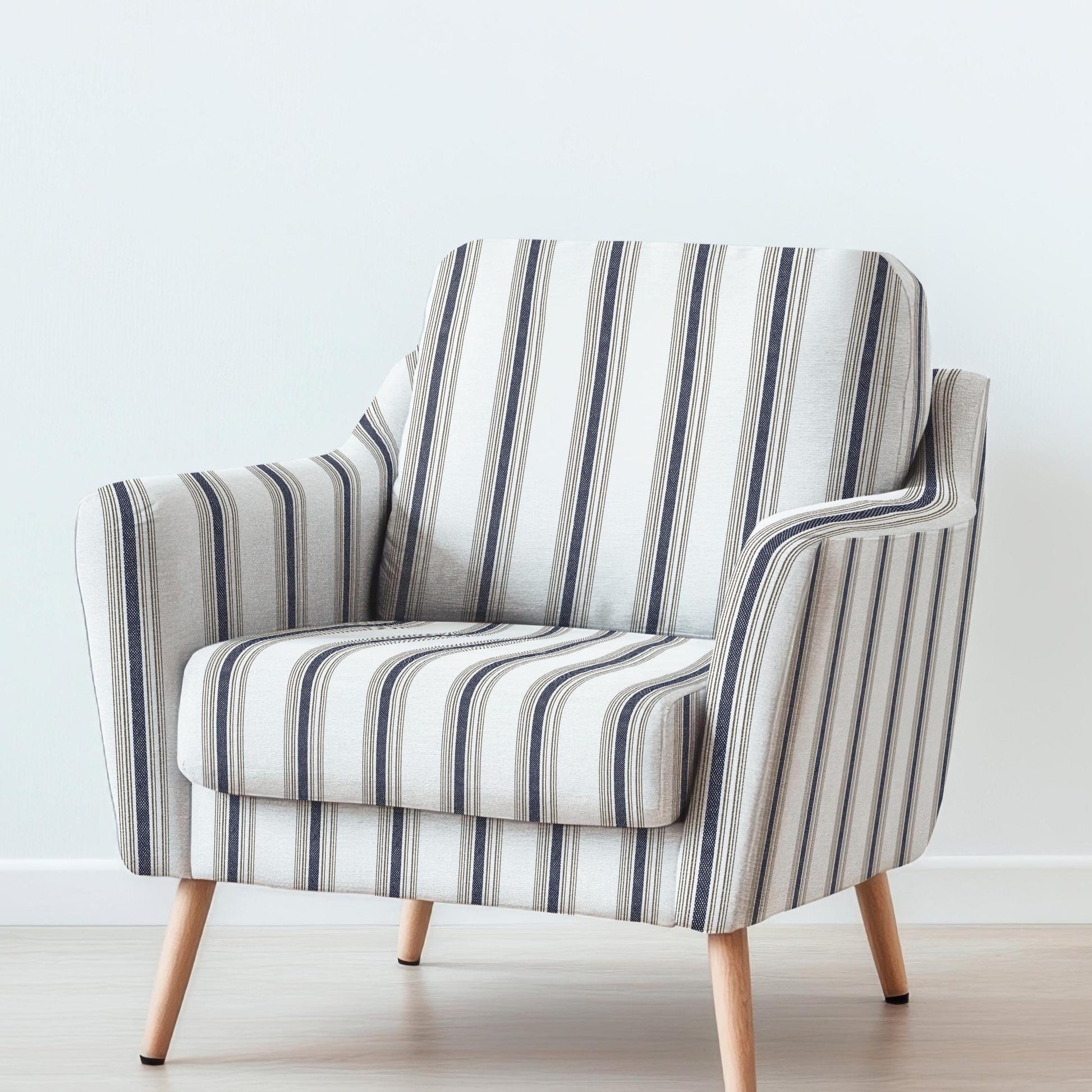 100% LINEN Fabric UPHOLSTERY 12oz - Belgian navy brown ticking stripe on white linen - Modern vintage Grandmillenial upholstery 2969