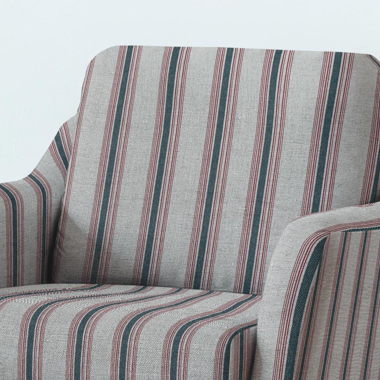 100% LINEN Fabric UPHOLSTERY 12oz - Belgian red ticking stripe on natural taupe grey linen - Modern vintage Grandmillenial upholstery 2969