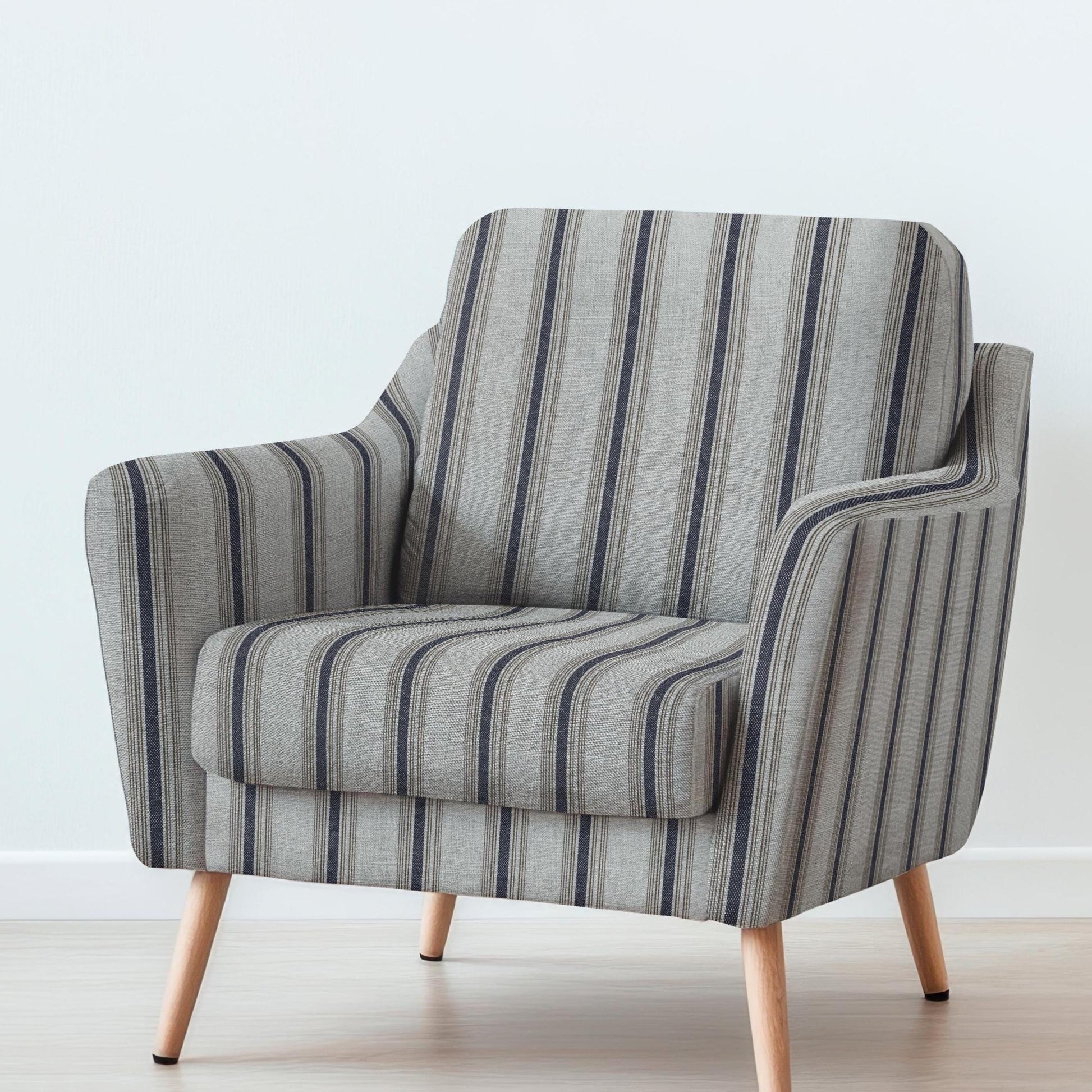 100% LINEN Fabric UPHOLSTERY 12oz - Belgian ticking stripe on natural taupe grey linen - Modern vintage stripe upholstery 2969